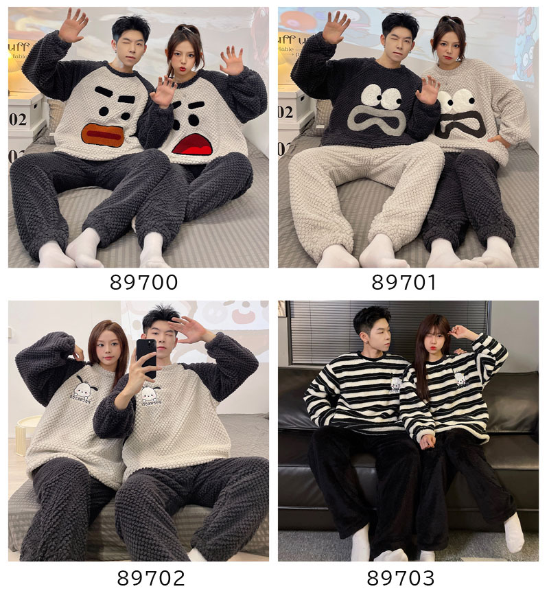 ペア パジャマ 秋冬 スウェット 上下 インナー 下着 ナイトウエア 豊富な品揃え 89700 89701 89702 89703 女M 女L 女XL 女2XL 男L 男XL 男2XL 男3XL