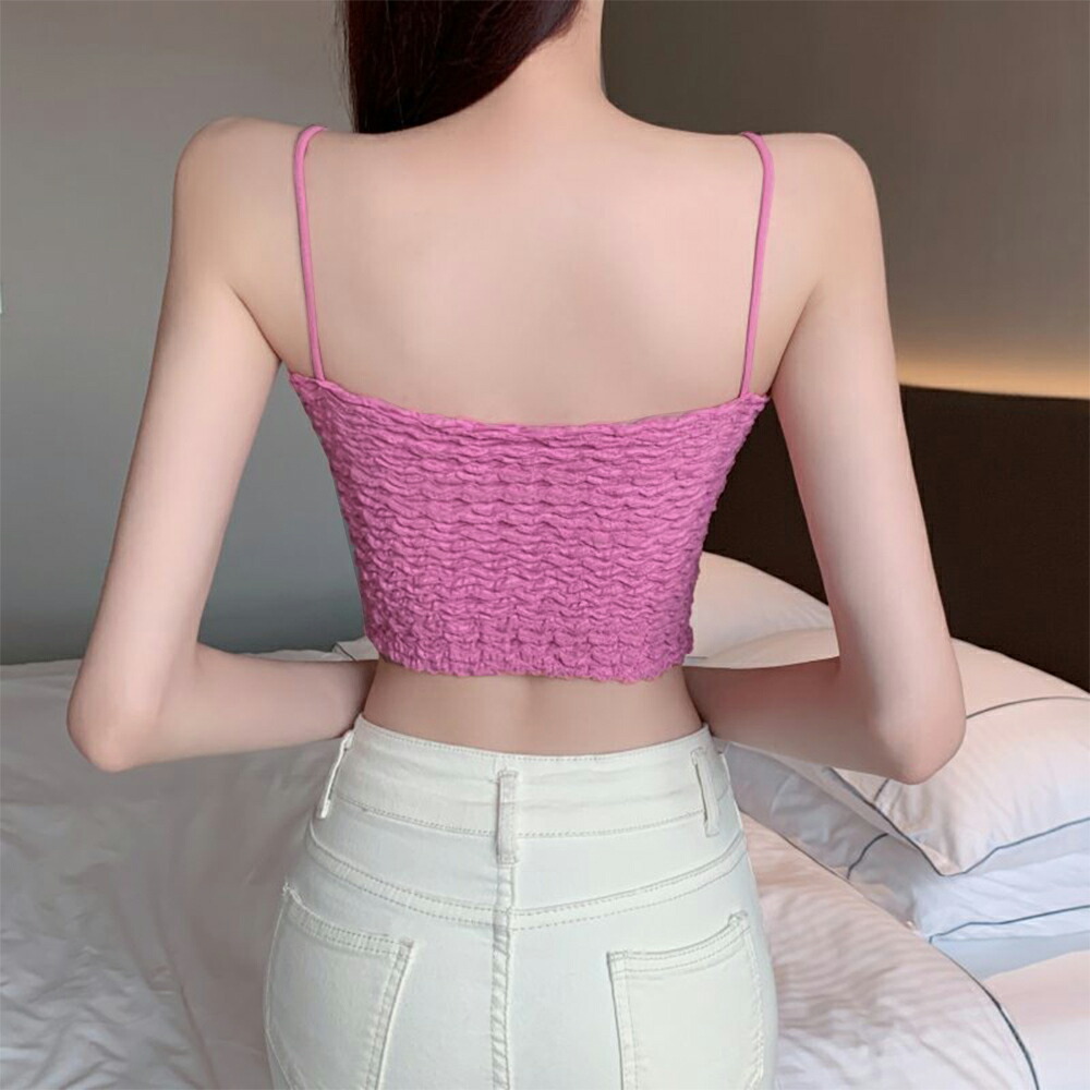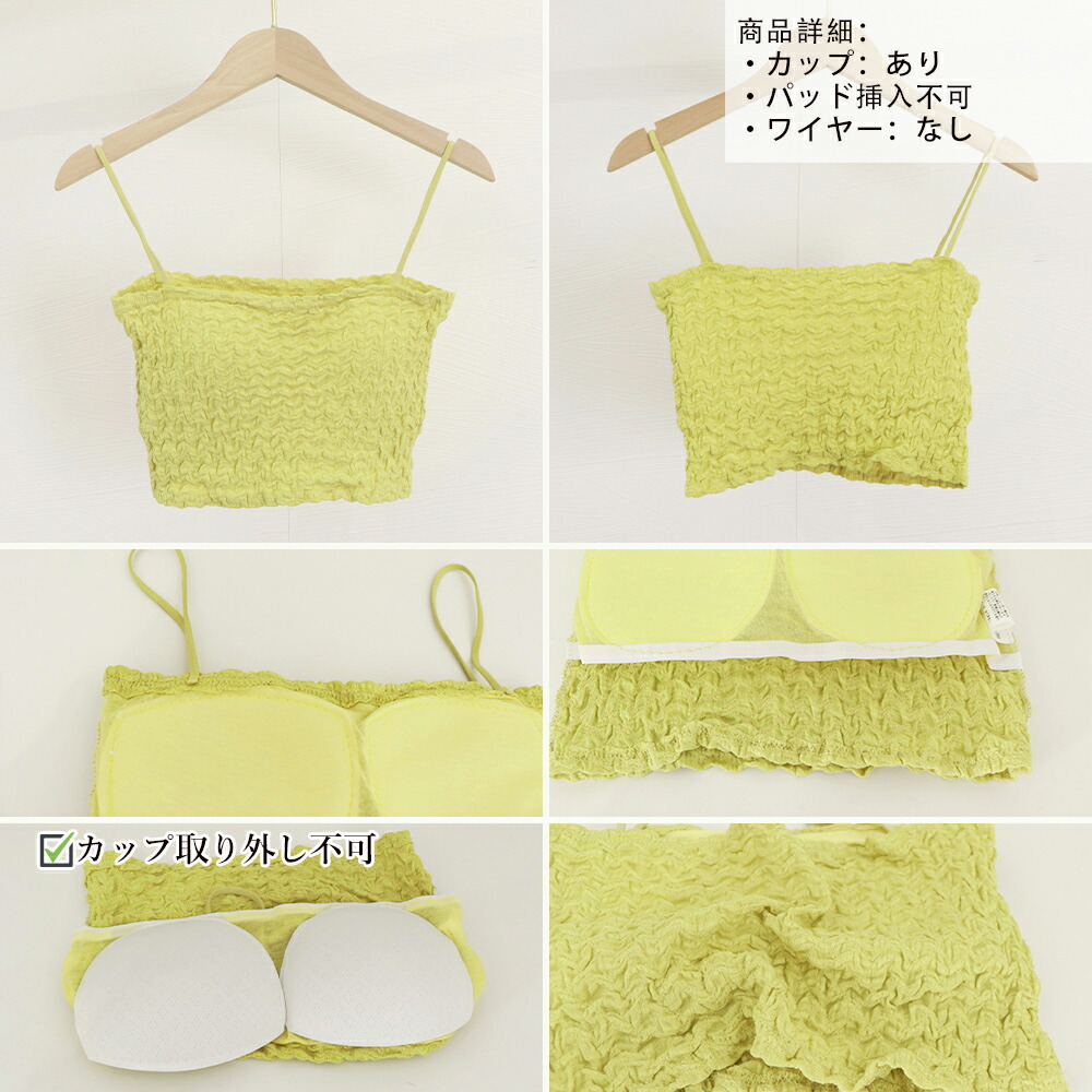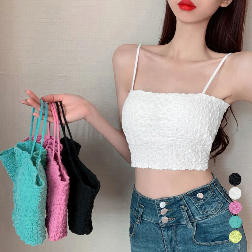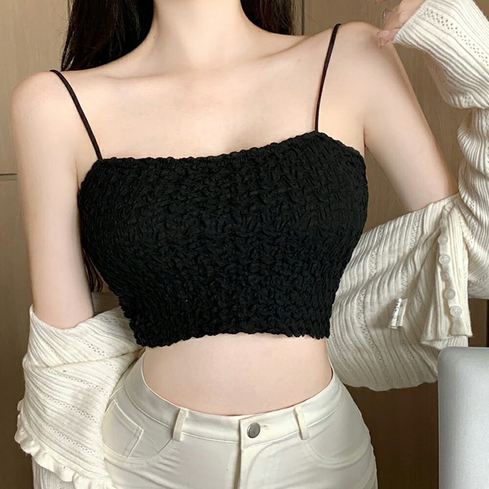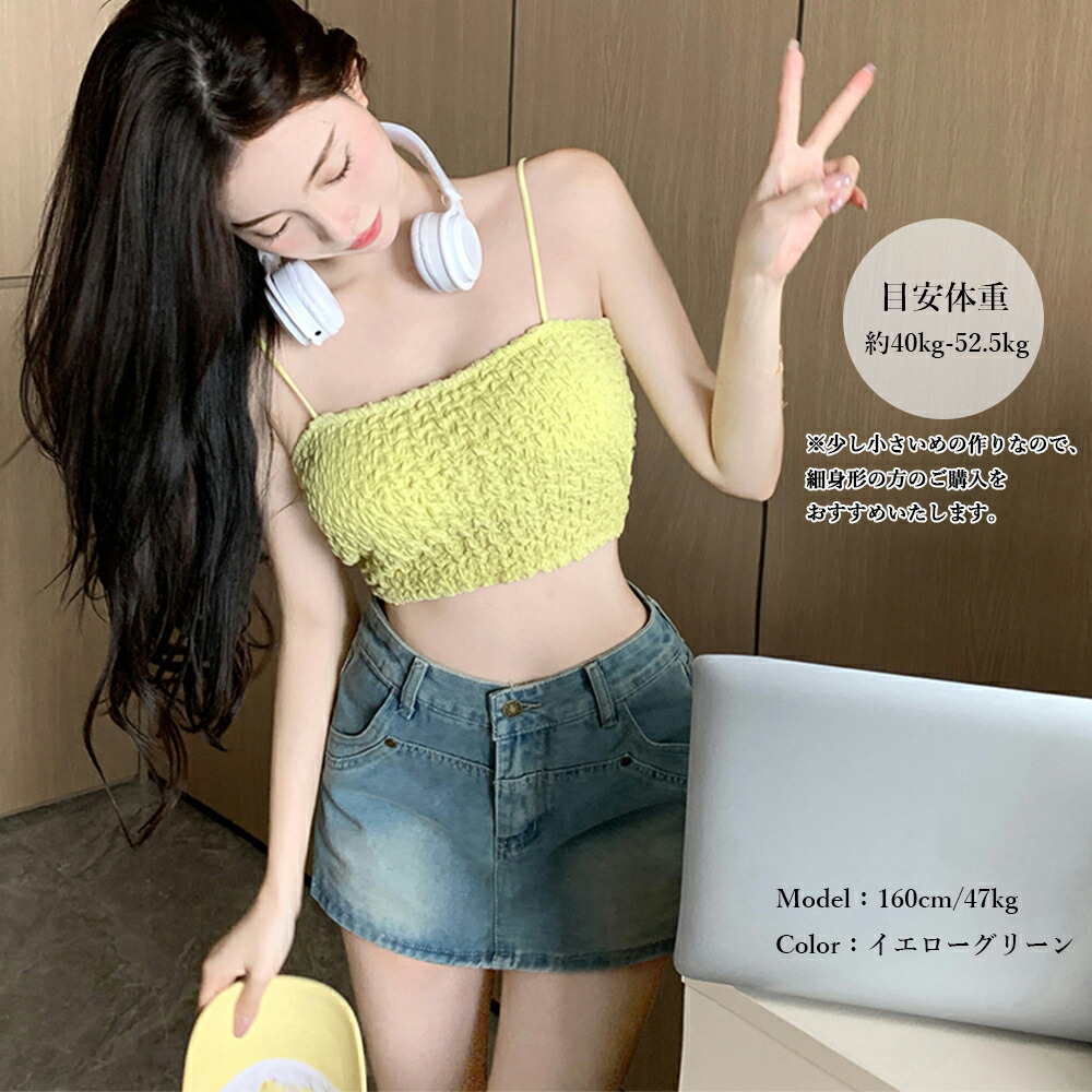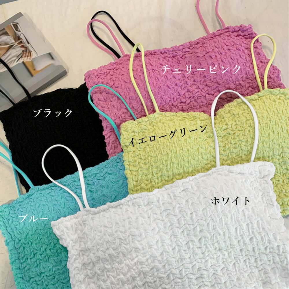 シャーリングショートキャミソール カッ トップス キャミソール 通販 1 ブラック 2 ブルー 3 チェリーピンク 4 ホワイト 5 イエローグリーン