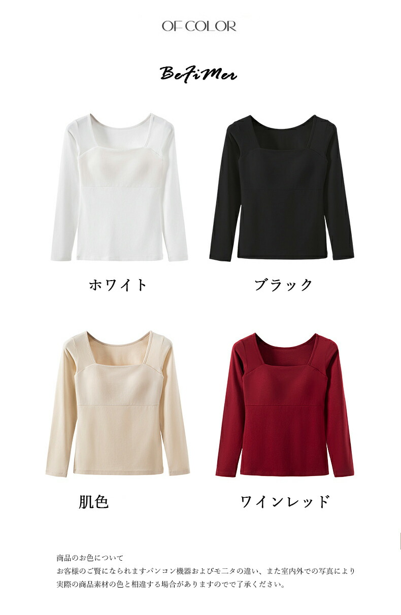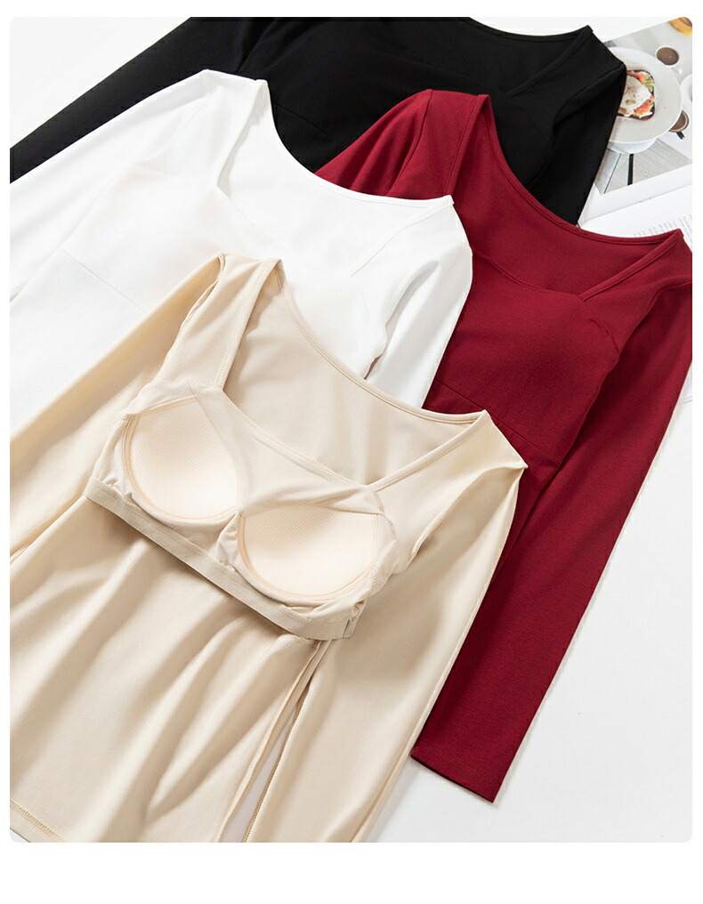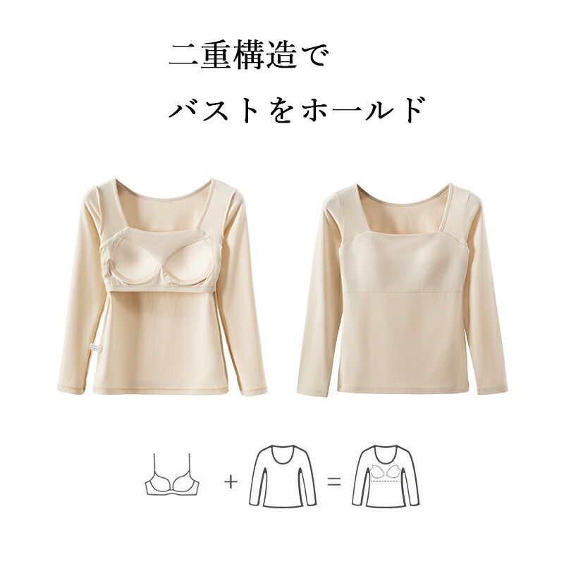 カップ付きインナー トップス 長袖 T レディース インナー 下着 ブラトップ 期間限定割引クーポン 肌色 ホワイト ワインレッド ブラック S M L XL