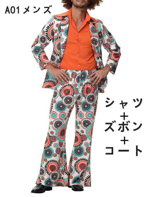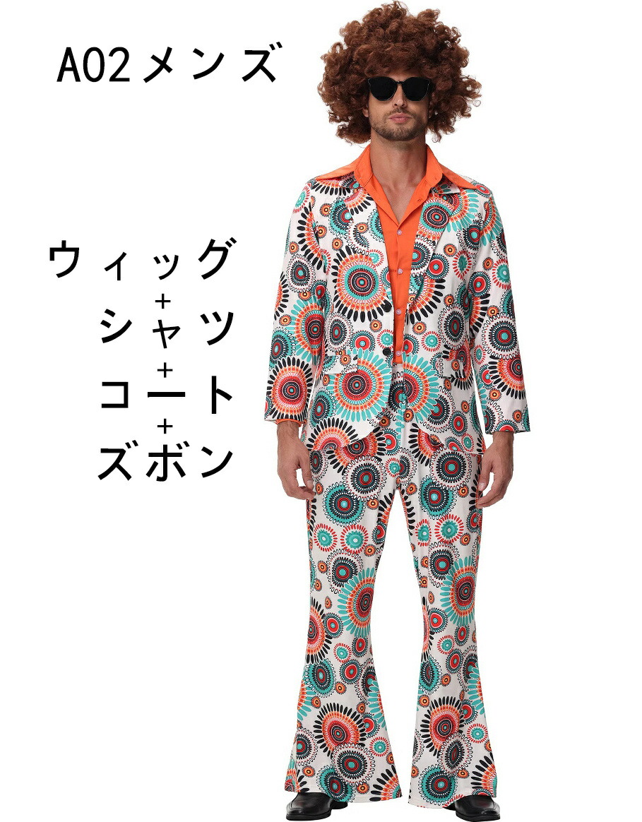 70s ファッション ディスコ コスプ キッズ ベビー マタニティ 期間限定ポイントUP! ヘッドスカーフ+トップス+ズボン シャツ+ズボン+ コート ウィッグ+シャツ+ズボン+ コート M L XL