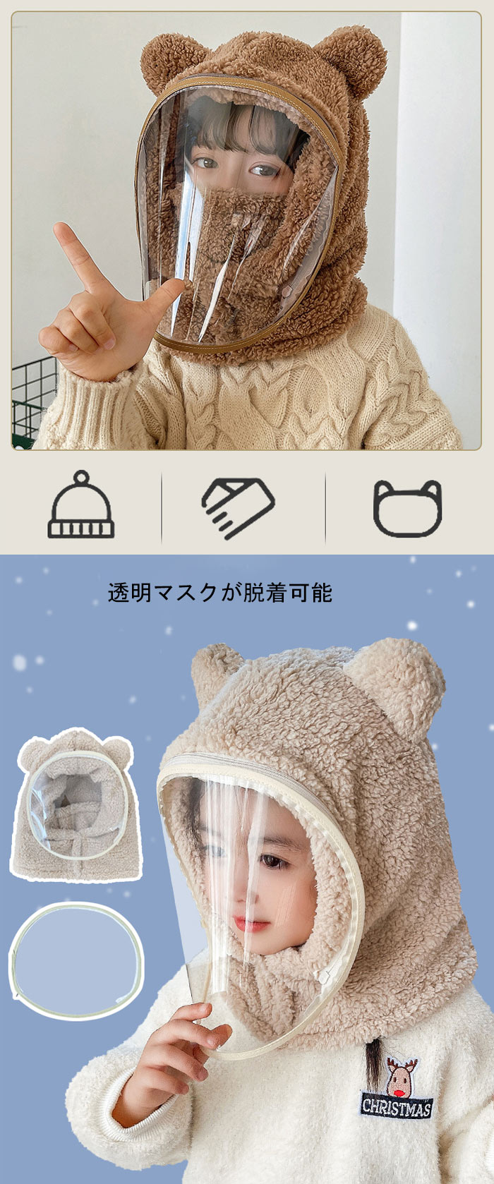 目出し帽 ボア帽子 キッズ 帽子 女の キッズ 帽子 ハット 通販 ベージュ ピンク コーヒー色 グレー ホワイト 2-8歳向け 8歳以上