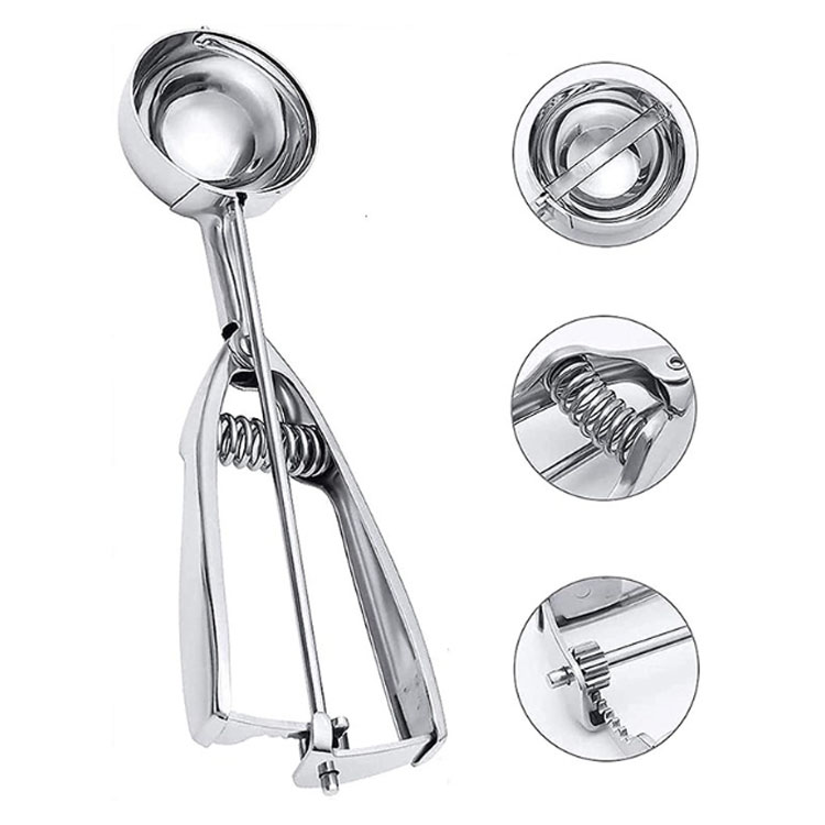 【素材】オールステンレス素材、耐久性、厚みのある滑り止めハンドル、手触りの良さ、アイスクリームを楽しむための必需品、果物の掘り出しなどにも使用できます。