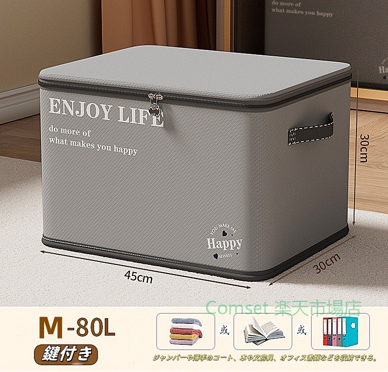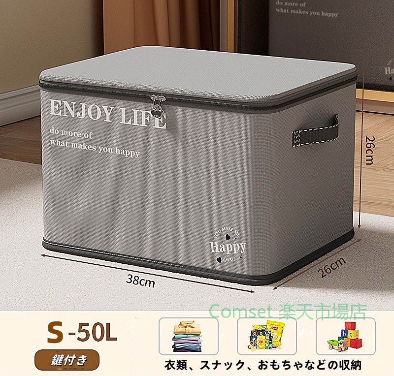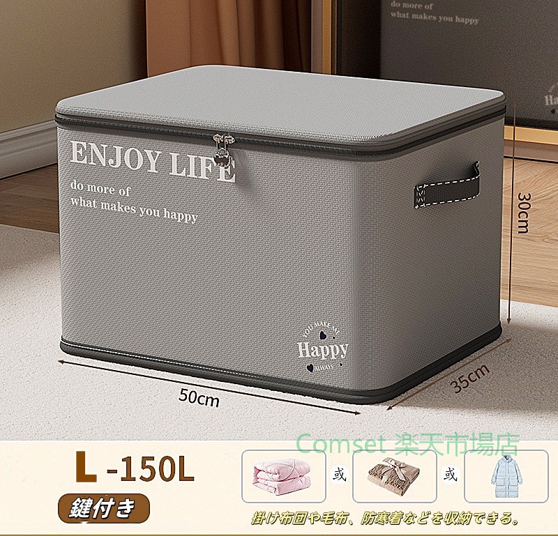2025 収納新製品鍵付き収納ボックス S-50L M-80L L150L グレー ベージュ グリーン・ストライプ