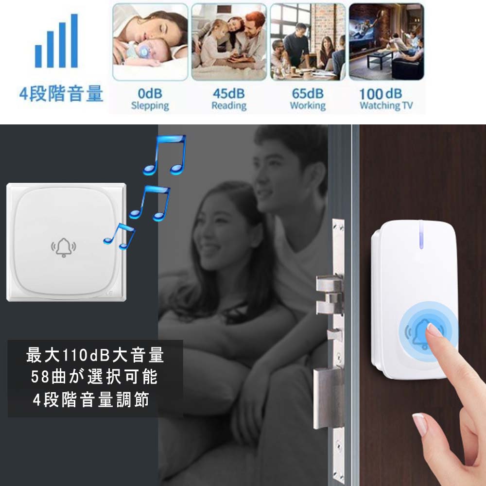 高感度の受信機を採用して、2階建ての建物でもご使用いただけます。障害のない場所で通信が最大150mまで届けます。4段階音量調節できるので、ご隣人にご迷惑をかけないように、場所/時間によって調整できます。