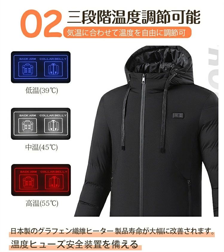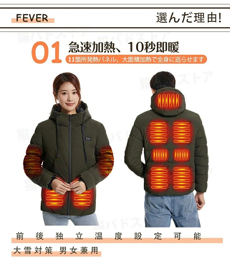 防寒着 ヒートジャケット ジャンパー ブルゾン フード付き ジャケット ヒーター11枚内蔵 メンズ ヒーター付き 電熱 レディース
