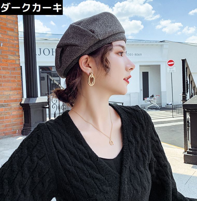 ベレー帽 ベレーキャップ 帽子 ぼうし レディース ツイード風 厚手 防寒 防風 保温 暖かい 小顔効果 おしゃれ 無地 秋冬