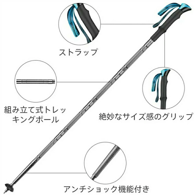 負担軽減、心よさ:トレッキングポールには足裏や下半身の関節にかかる負担を軽減する。 リズミカルに足を運ぶ助けになり、疲れにくくなります。そして、衝撃吸収システムによる、衝撃の少ない静かな突き心地と、底突き感のない優しい跳ね返りが特徴のアンチショック機能。登山時の手首にかかる負担を軽減します。