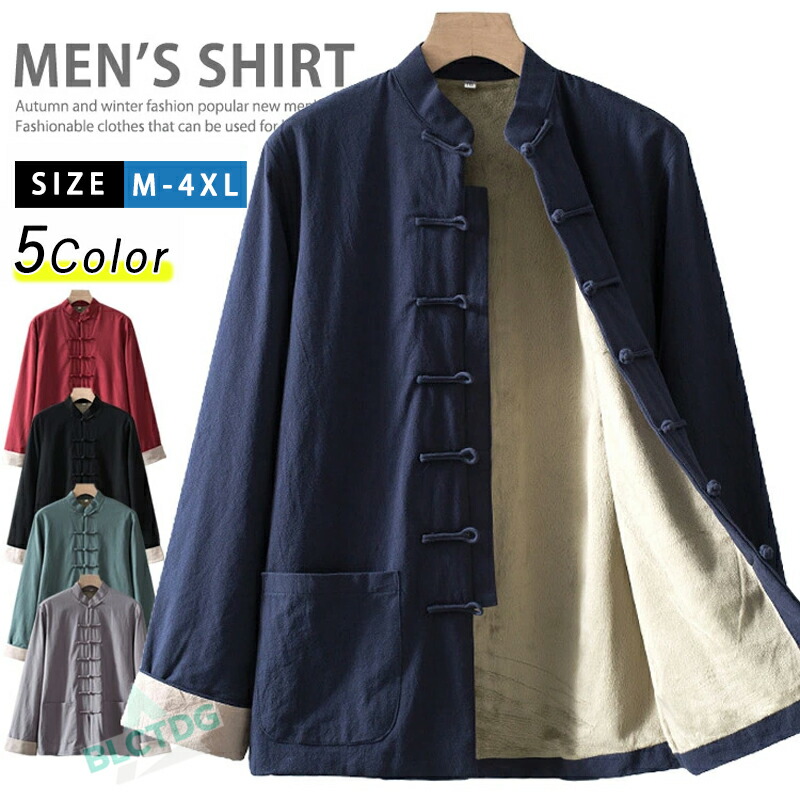 暖かい厚手シャツメンズチャイナシャツス コート ジャケット 続々入荷中 M L XL 2XL 3XL 4XL グレー ネイビー 黒 はいみどり ワイン