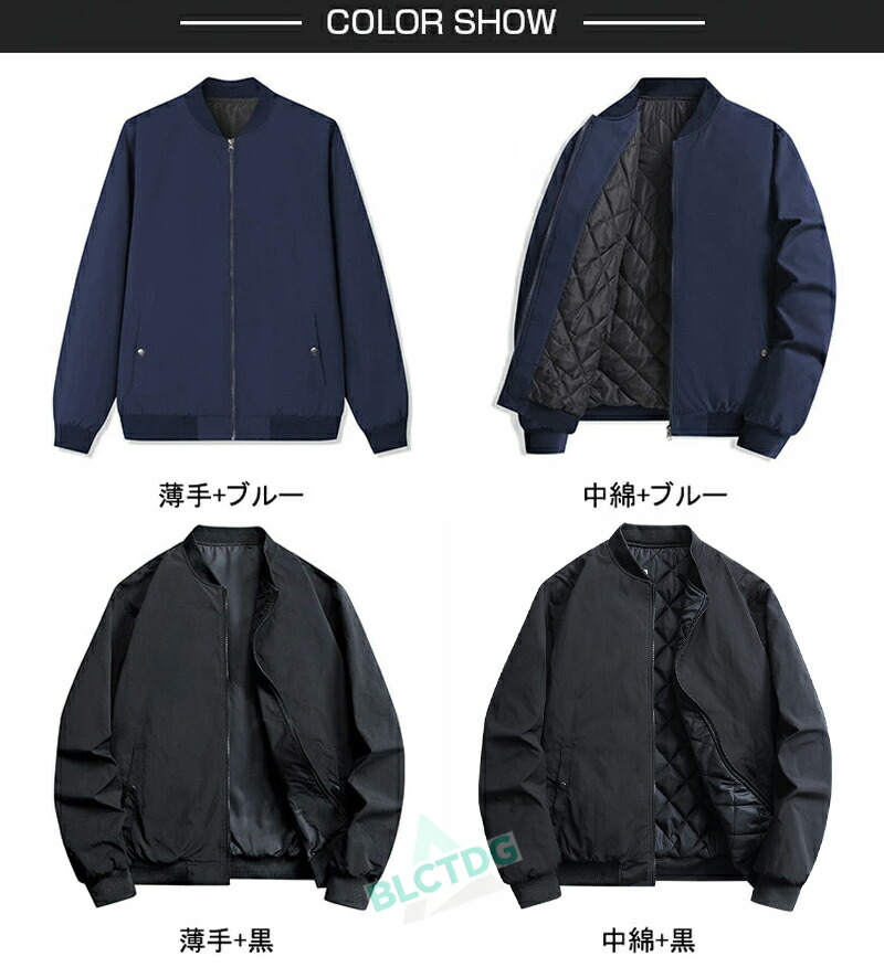 フライトジャケットメンズ薄手中綿入りM コート ジャケット 続々入荷中 S M L XL 2XL 3XL 薄手+ブルー 中綿+ブルー 薄手+黒 中綿+黒