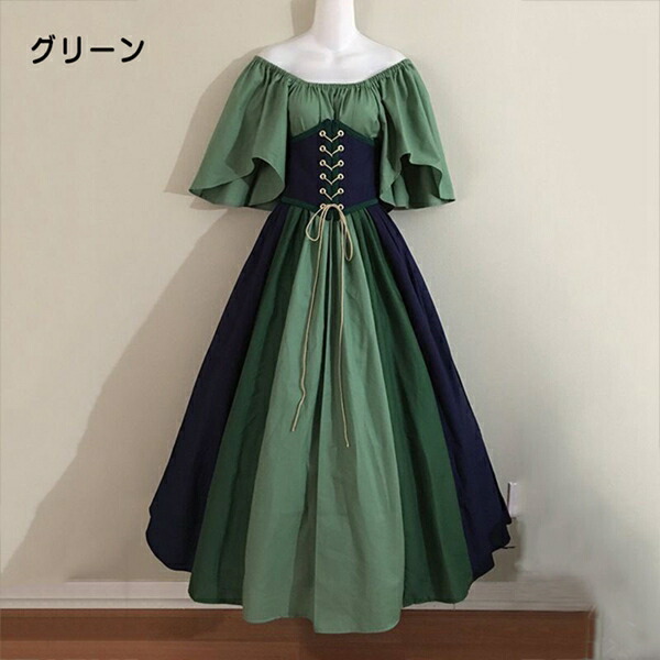 コスプレ ワンピース レディース ドレス 中世ヨーロッパ お姫様 貴族 洋装 半袖 ベルスリーブ ステージ衣装 王族服 豪華 ヨーロッパ風 発表会 コスチューム ハロウィン 仮装 演奏会