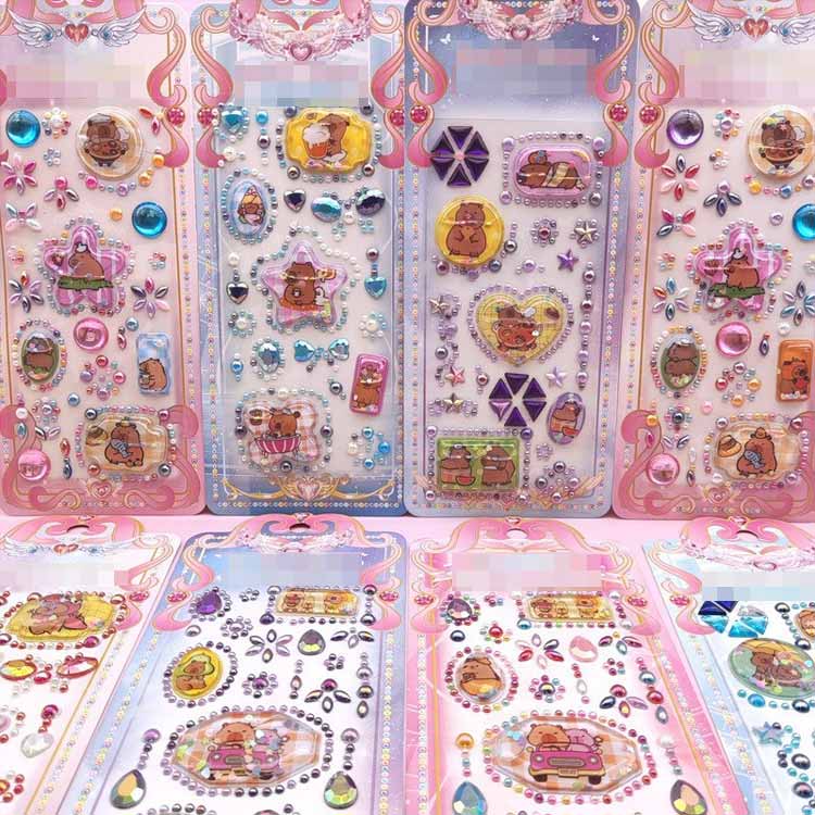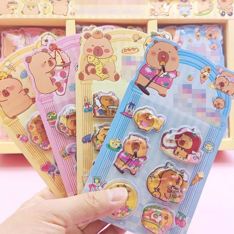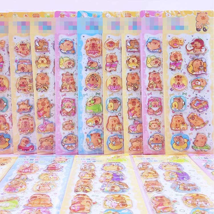 12枚セット ウォーターシール ぷくぷくシール ぷっくりシール デコシール シール帳 3D立体 シャカシャカシール カピバラさん キャラクター 水揺れシール ご褒美シール 手帳 ノー スパンコール入り