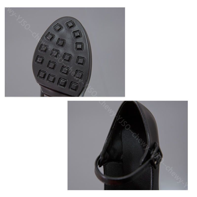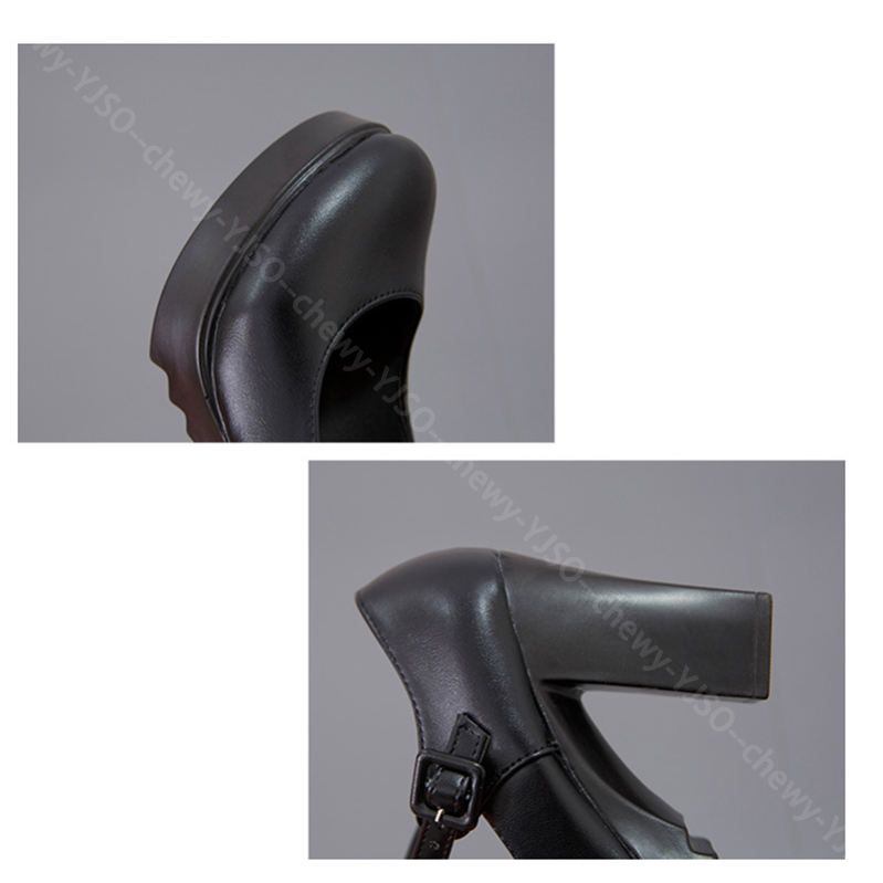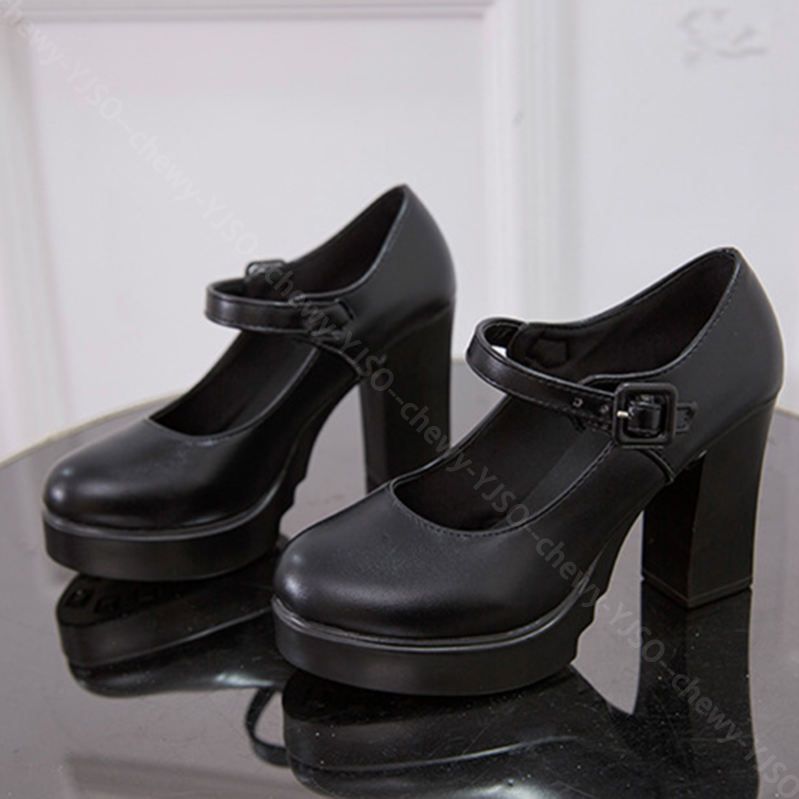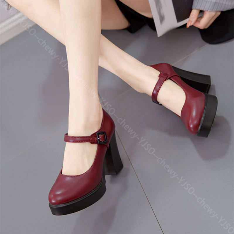 アンクルストラップ付き太ヒール厚底パンプス