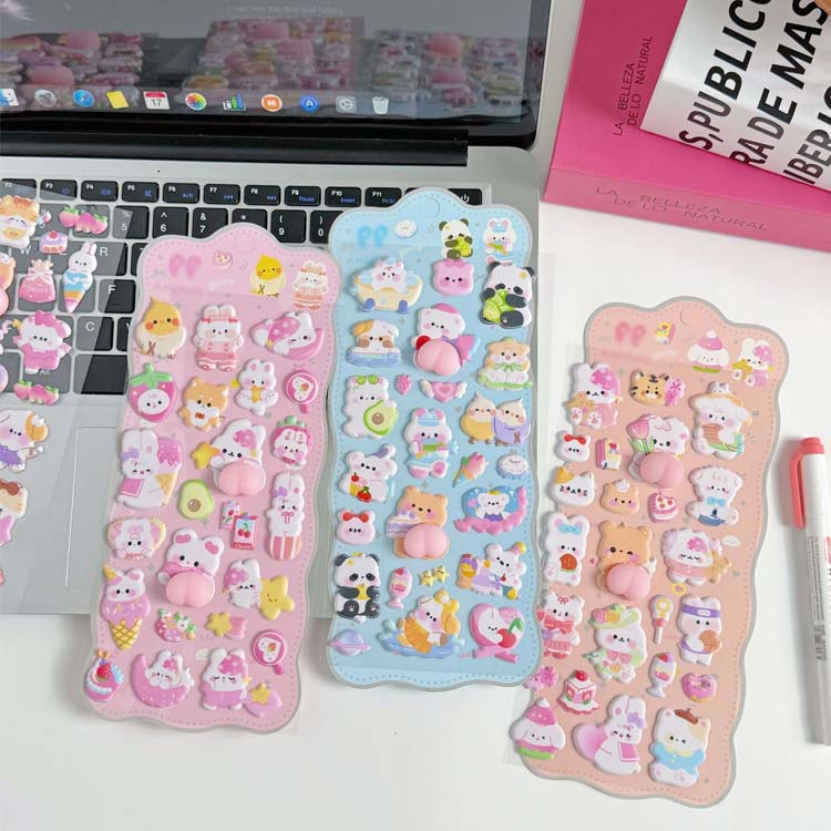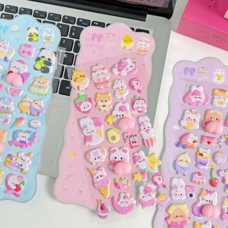 3Dシール おしりぷにぷに 4枚セット 日用品雑貨 文房具 手芸 続々入荷中 小鳥 パンダ 猫 犬 全4色