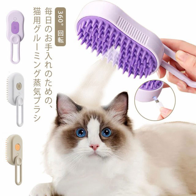 猫蒸しブラシ ペットブラシ スチームブラシ 猫 ブラシ 犬 抜け毛取り 犬猫用 猫スチームブラシ 3 in 1 蒸気ペットブラシ 360°回転 スリッカーブラシ グルーミング ペ USB充電式