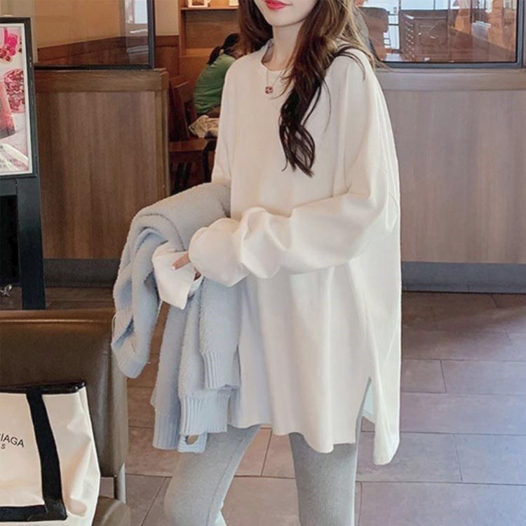 スリットカットソー トップス Tシャツ トップス Tシャツ カットソー 通販 ホワイト(薄手) ホワイト(裏起毛) M L XL 2XL
