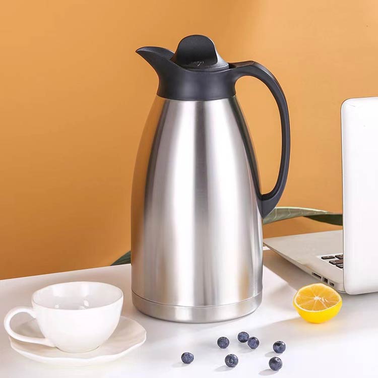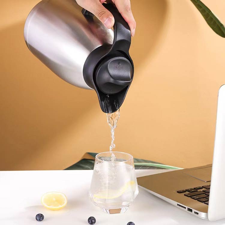 ステンレス素材を生かしたシンプルなデザインのポットは、保温も保冷もでき、飲みものを最適の温度に保ちます