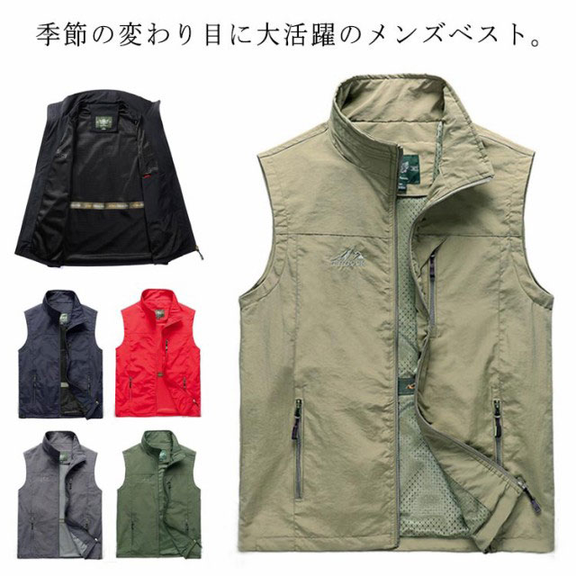 ナイロンベスト メンズ お釣りベスト トップス ベスト ジレ 豊富 赤 黒 灰 緑 ベージュ 紺 M L XL 2XL 3XL 4XL 5XL 6XL