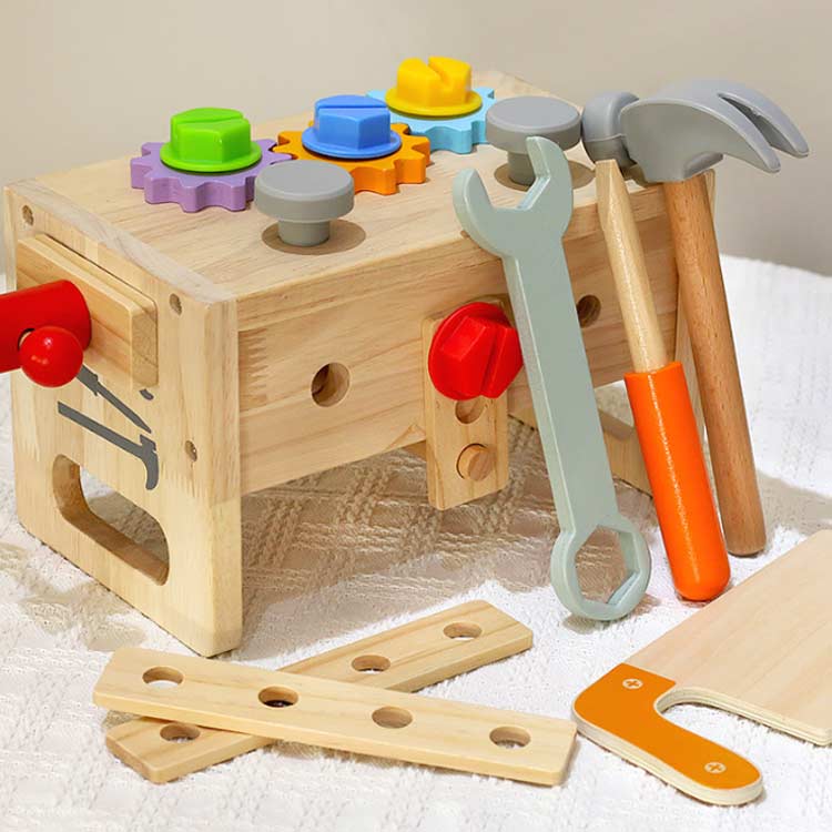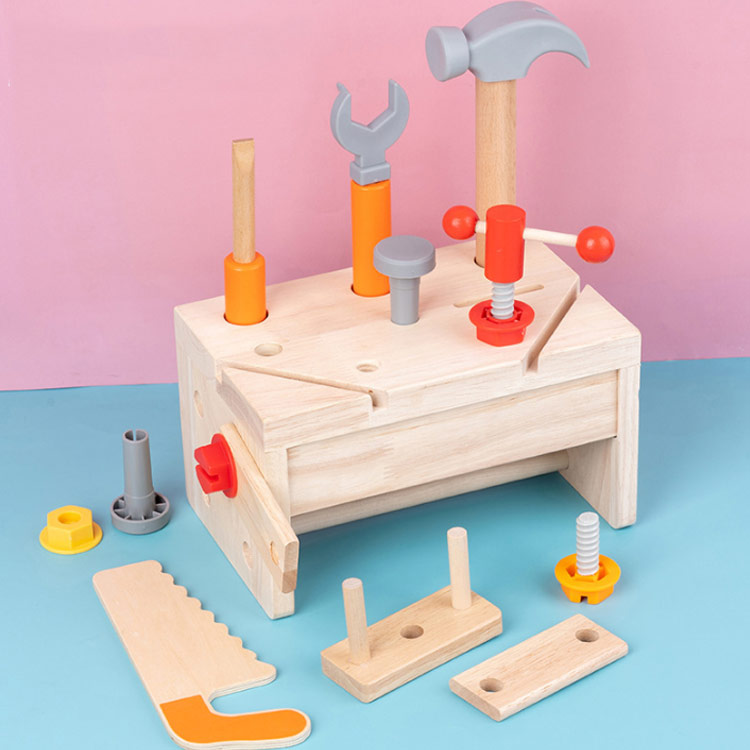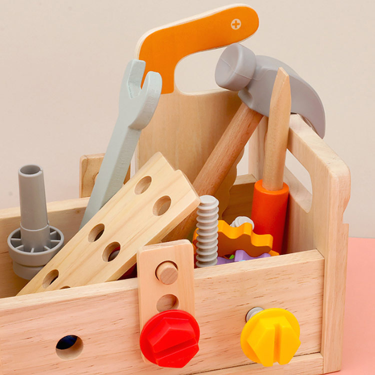 【大工 おもちゃ】子供用ツールセットは明るい色の木製素材で作られており、子供たちが遊ぶのに適しています。 すべてのコーナーは、鋭いエッジやバリなしで滑らかに研磨されています。