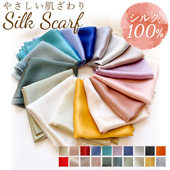 スカーフ シルク 100% 正方形 首 マフラー スカーフ レディーススカーフ 40%Off ホワイト ピンク ワイン スモークブルー ターコイズ パープル ネイビー ライトグレー ブラック オレンジ レッド アイボリー ベージュ ダークピンク カーキ スモークグリーン ライトグリーン サンドベージュ イエロー ダークグレー