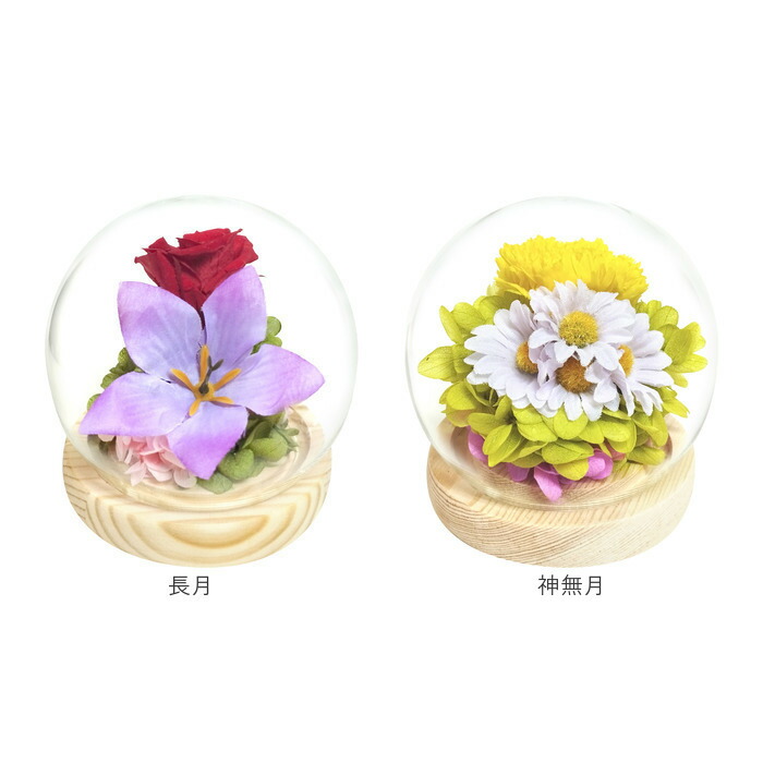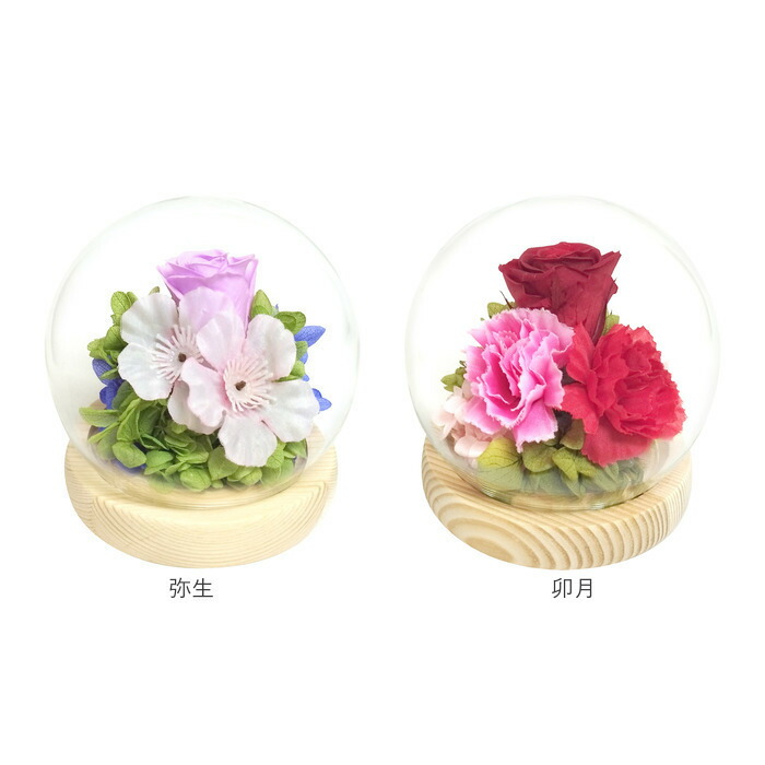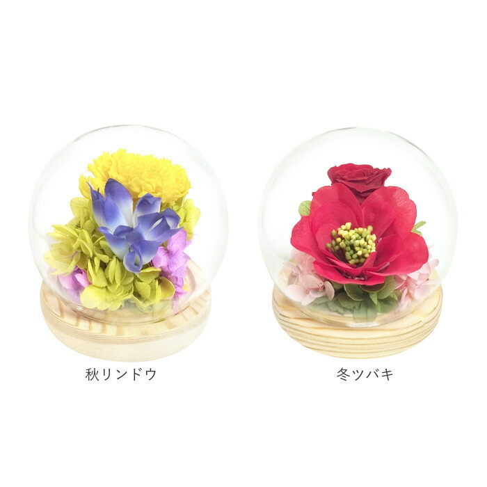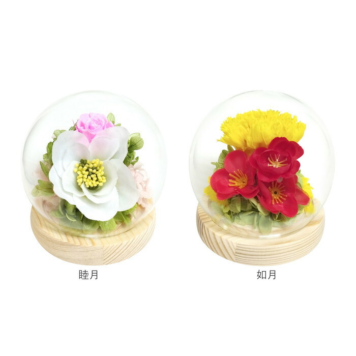 お供え ガラスドーム 供養 仏花 供え 春サクラ 夏ハス 秋リンドウ 冬ツバキ 睦月 如月 弥生 卯月 皐月 水無月 文月 葉月 長月 神無月 霜月 師走