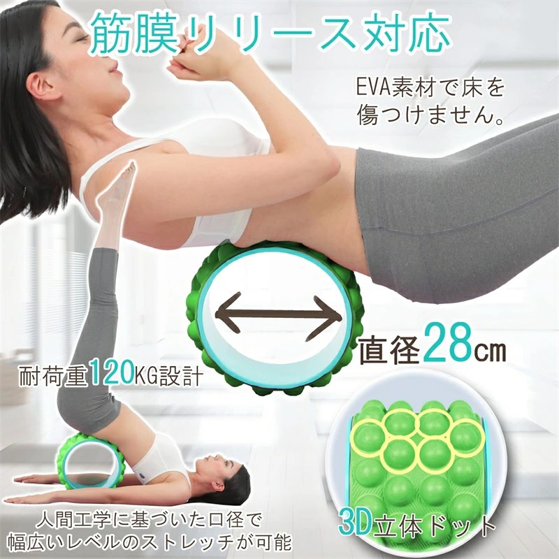 ヨガホイール 筋膜リリース ピラティス グリーン&ブルー ピンク&ブルー パープル&ブルー ブラック&ブラック ブラック&イエロー