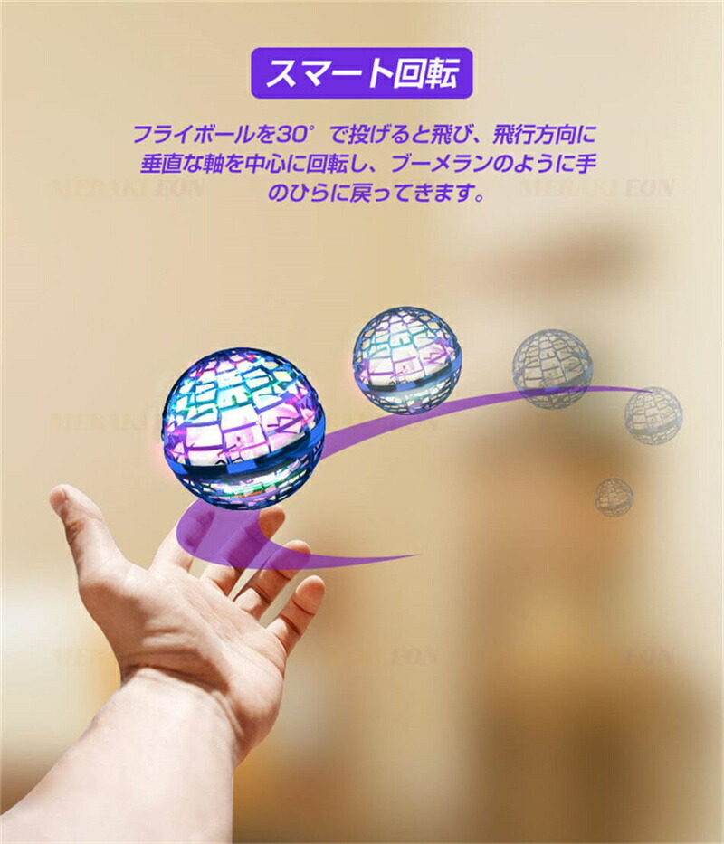 魔法の杖付き空飛ぶボール フライング ボール 空飛ぶ ブーメラン スピナー ジャイロ ドローン UFO おもちゃ 光る 飛行 ASMR LEDライト 遊び ロータリー 回転式 飛行ボール 浮遊