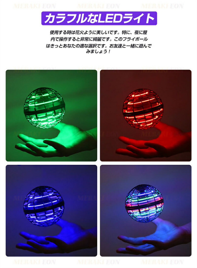 従来のドローンと異なる球体ドローン! 複雑の操作がないので、より簡単に新しい遊び方が楽しめます。 【カラフルなLEDライト】