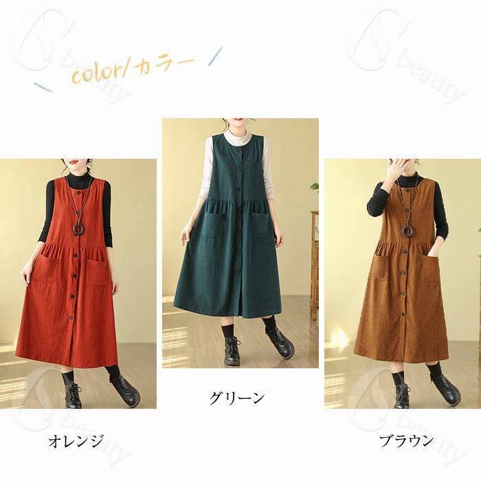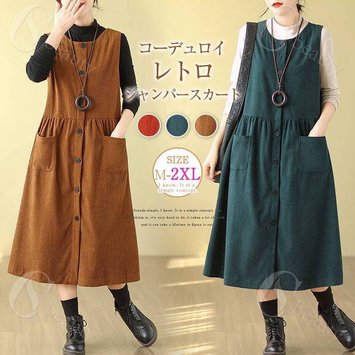 コーデュロイ ジャンパースカート レデ レディースファッション 続々入荷中 オレンジ グリーン ブラウン M L XL XXL