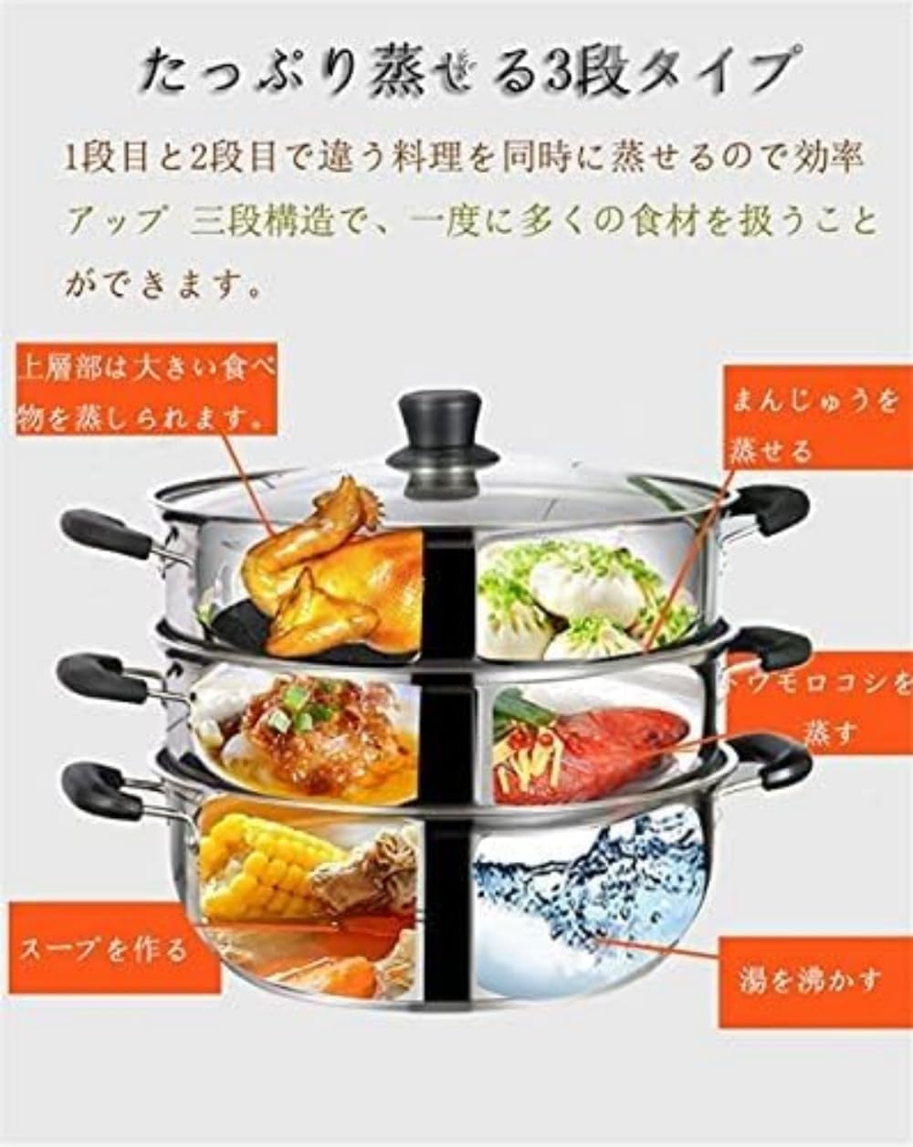 多機能 蒸し鍋 蒸し器 二段 三段 蒸 キッチン用品 食器 調理器具 通販 2段 3段 26cm 28cm 30cm 32cm 34cm