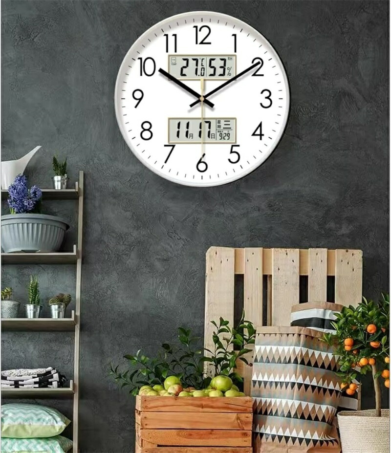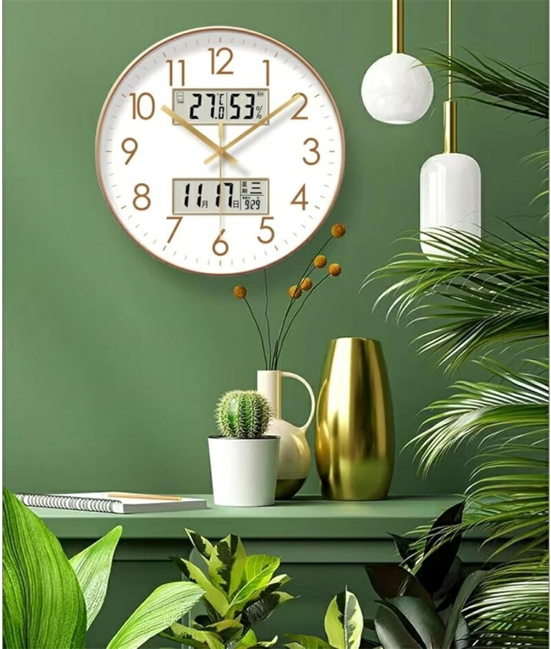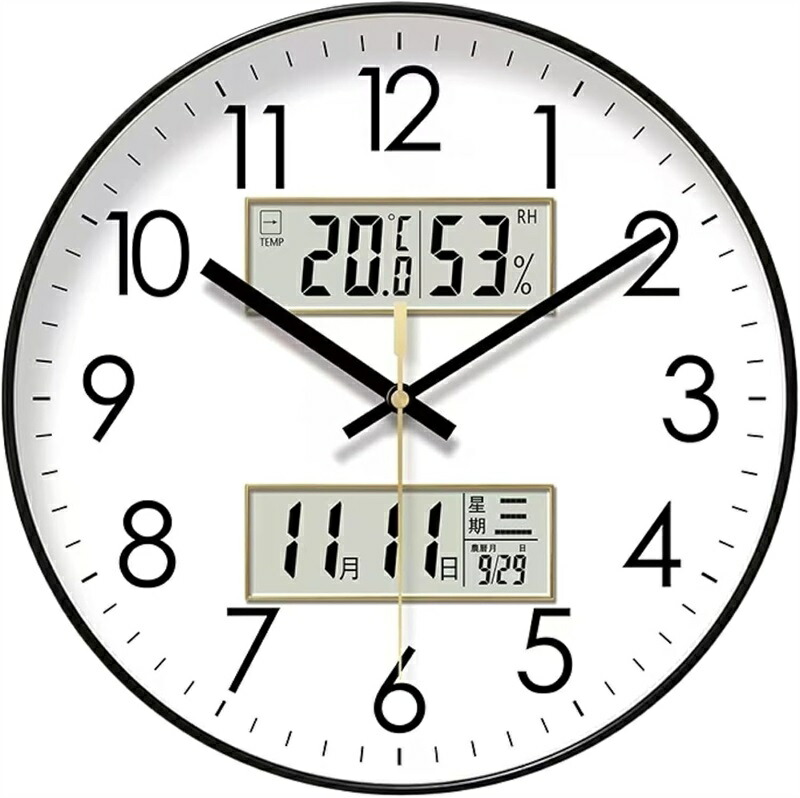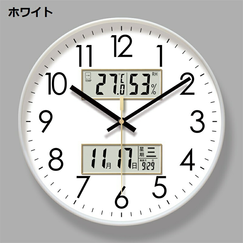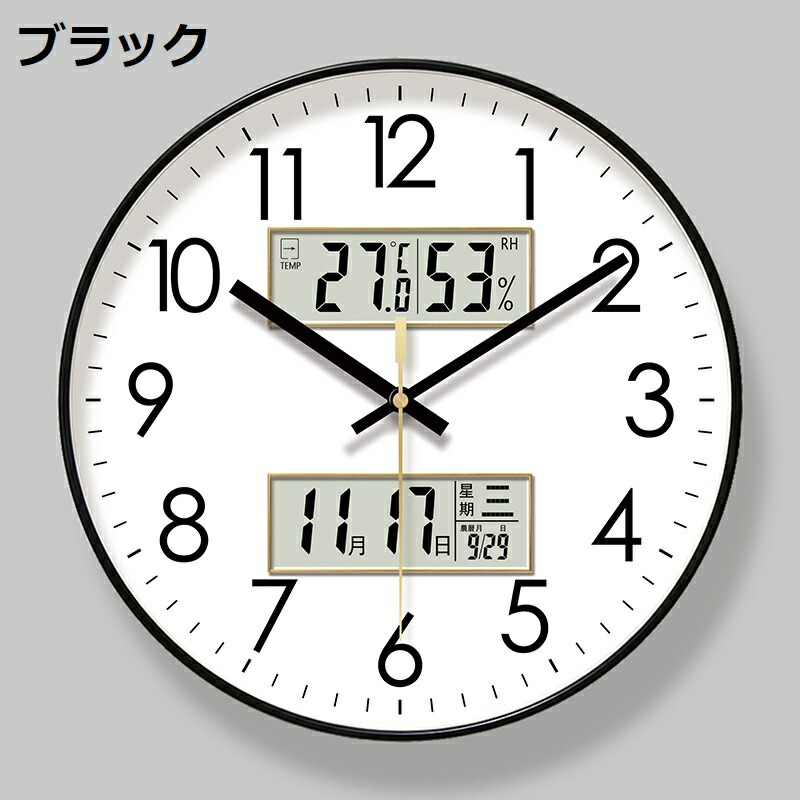 壁掛け時計 アナログ 掛け時計 温度 ブラック ゴールド ホワイト 10インチ 12インチ 14インチ