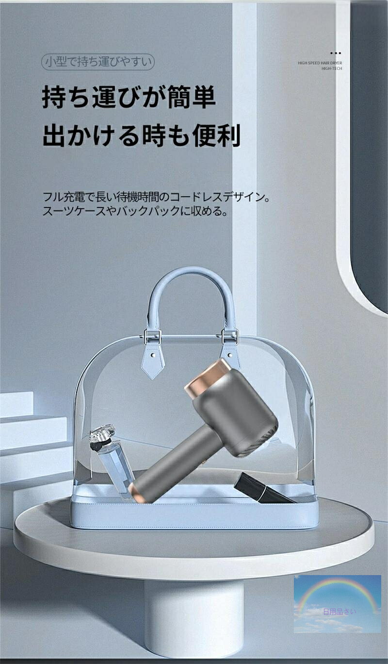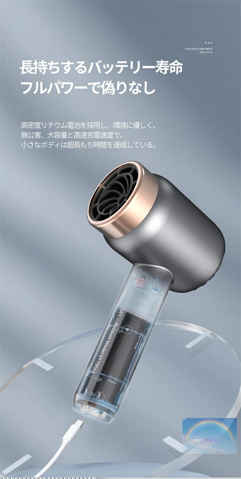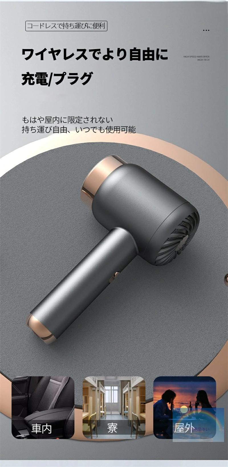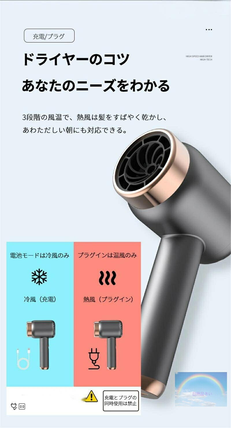速乾充電式ヘアードライヤーコードレス寒 ダークグレー アイボリー 優雅なパープル