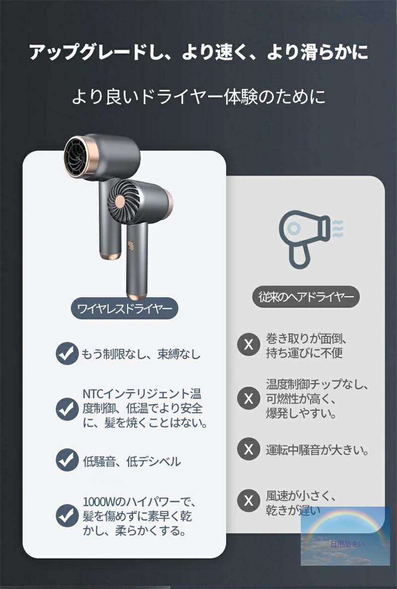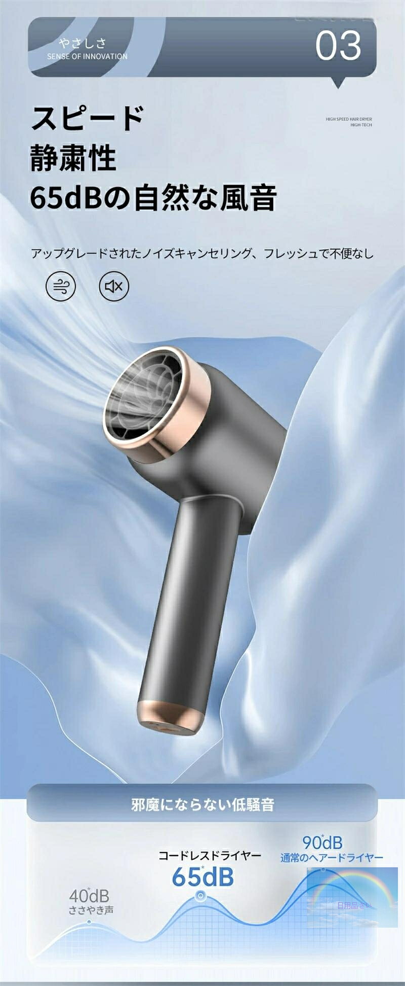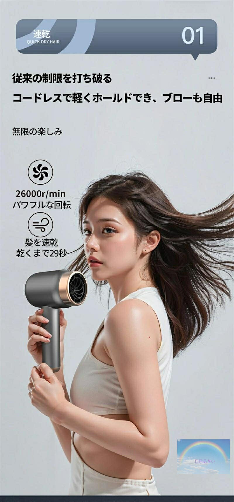 速乾充電式ヘアードライヤーコードレス寒 ダークグレー アイボリー 優雅なパープル