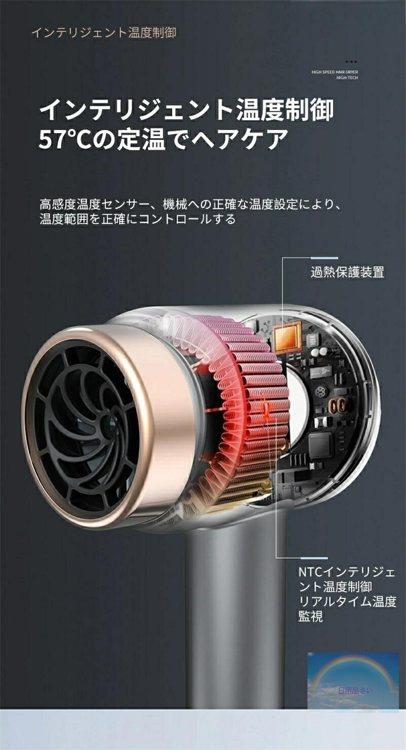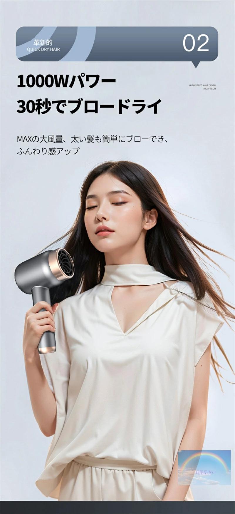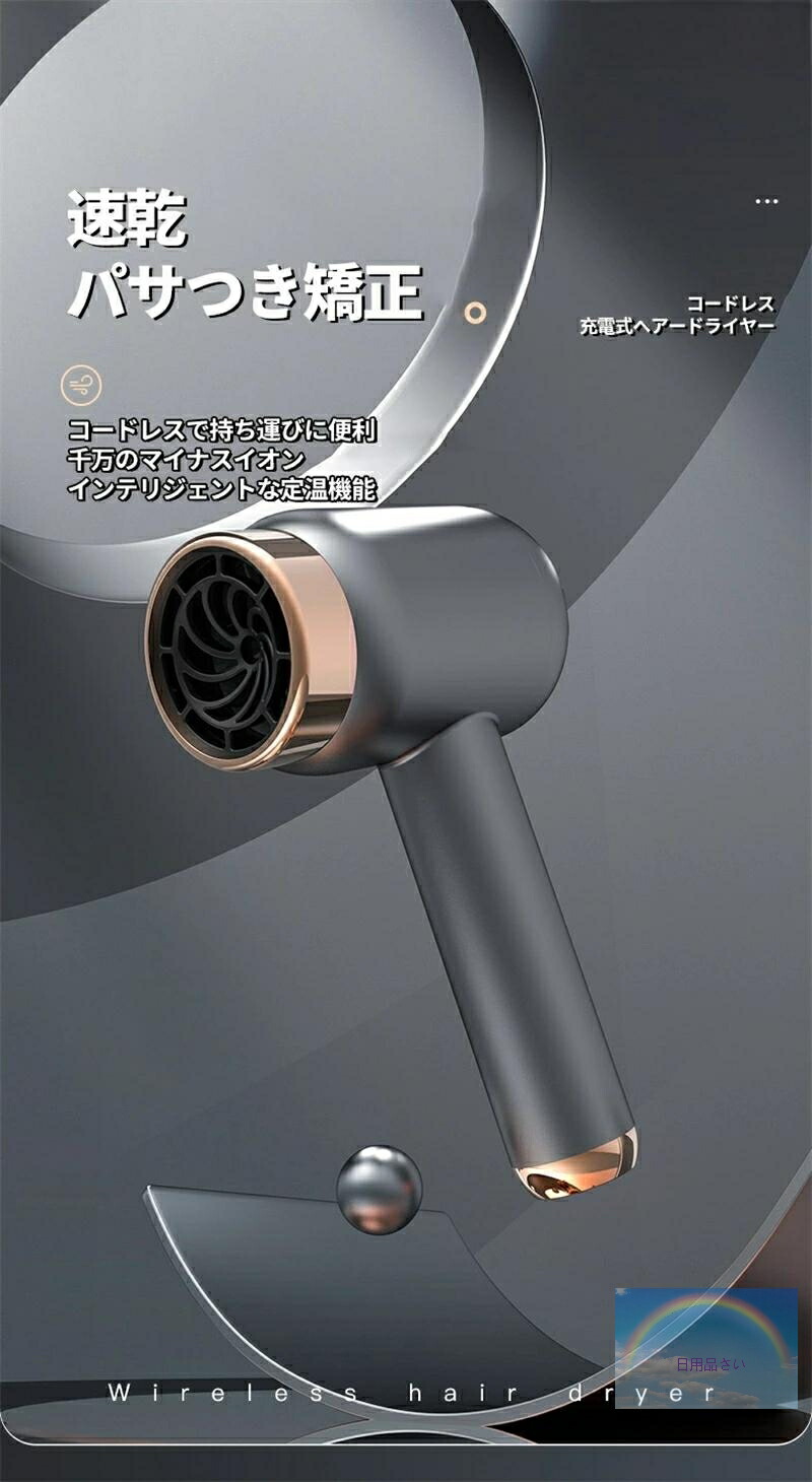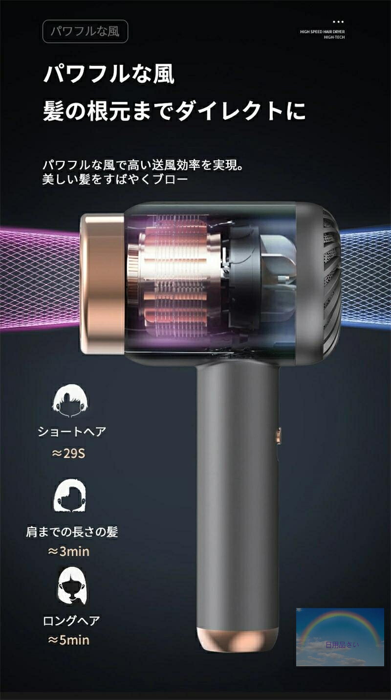 速乾充電式ヘアードライヤーコードレス寒 ダークグレー アイボリー 優雅なパープル