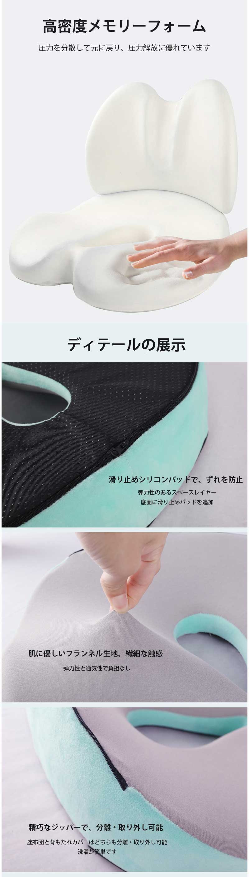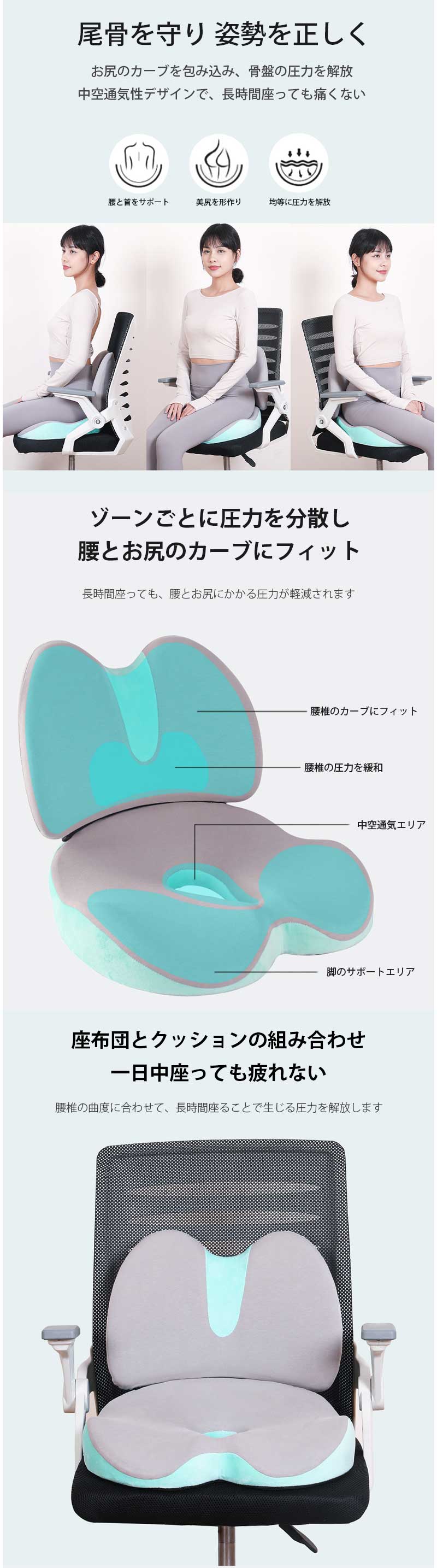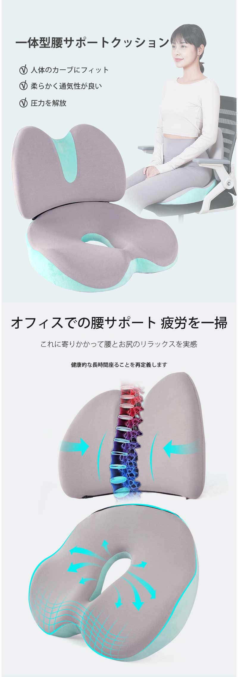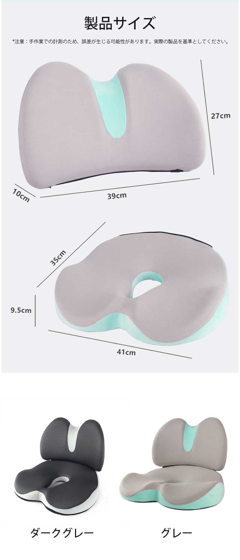 姿 人間工学 低反発クッション 骨盤ク ダークグレー グレー 座布団 腰用クッション+座布団