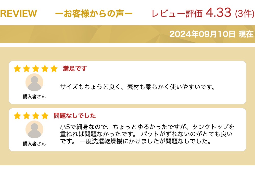 ・生産時期により、生地やゴム、縫製仕様が若干ことなります。