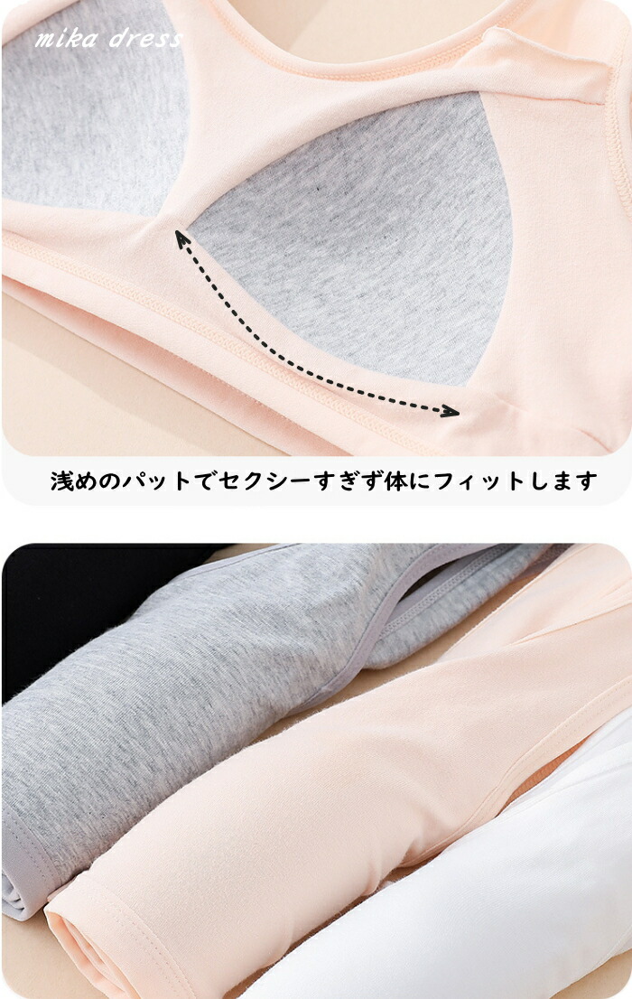 伸縮性のあるノンストレスな着心地で体にフィット。固定パッドが安定しているのでブラジャーがまだ早いキッズのスポーツブラやブラトップに。