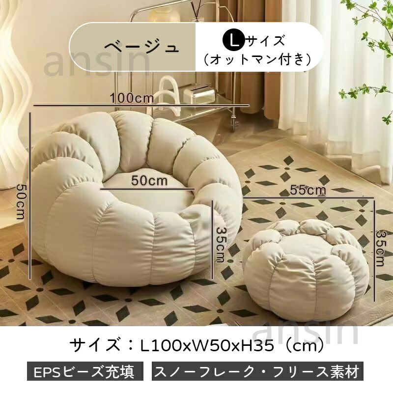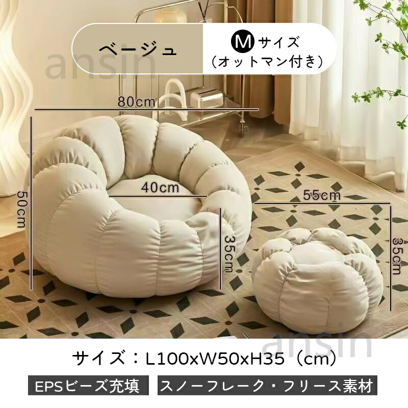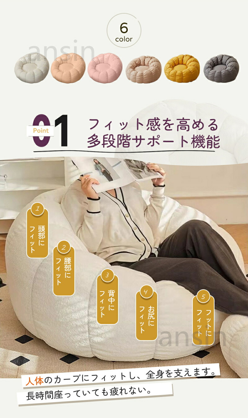 ビーズクッション ソファ 一人掛け 一 ホワイト ピンク ライトブラウン イエロー グレー ベージュ Mサイズ(50*80cm) Lサイズ(50*100cm)