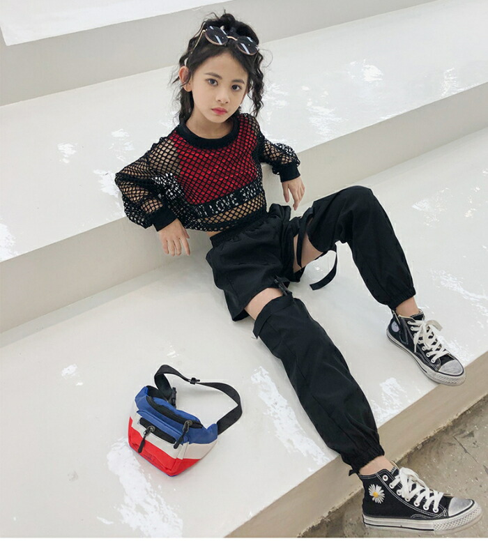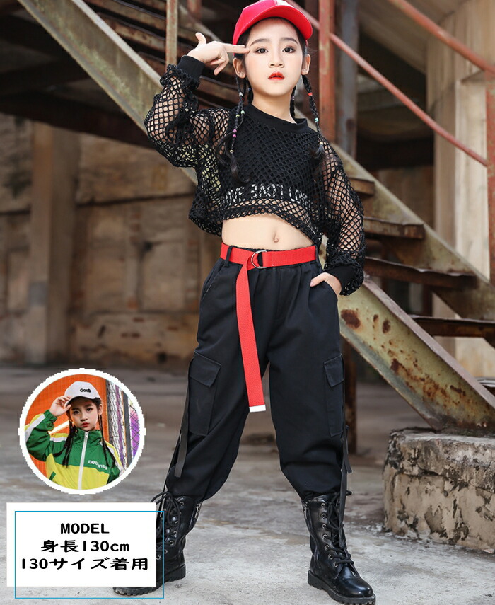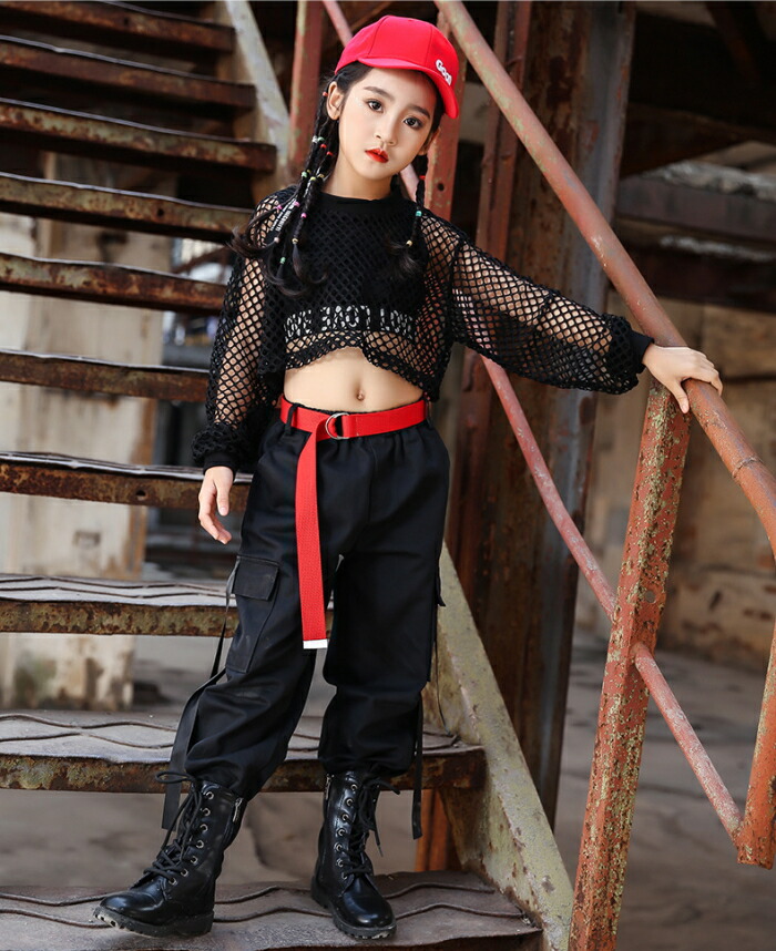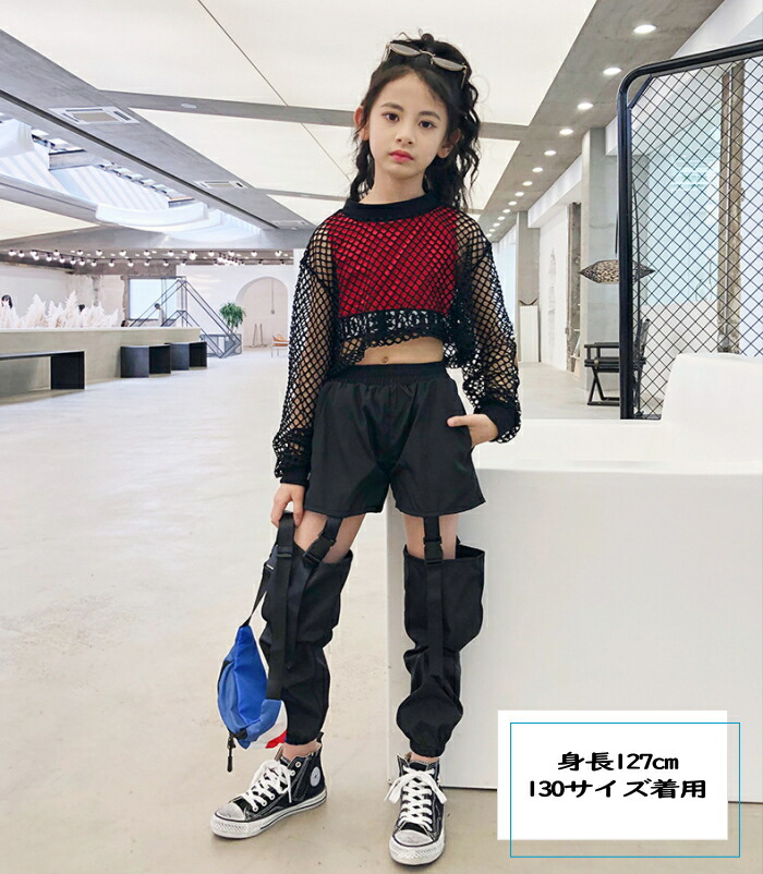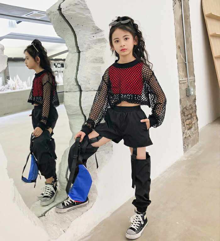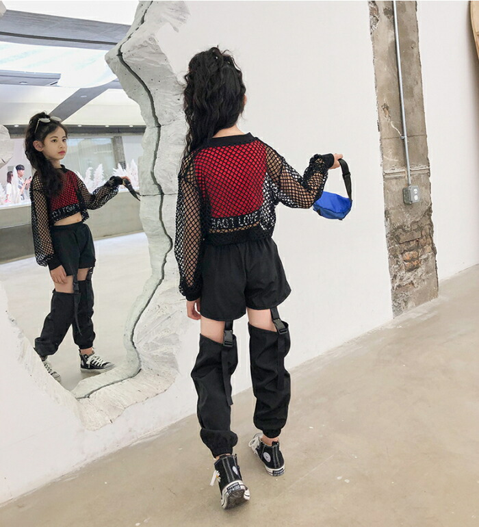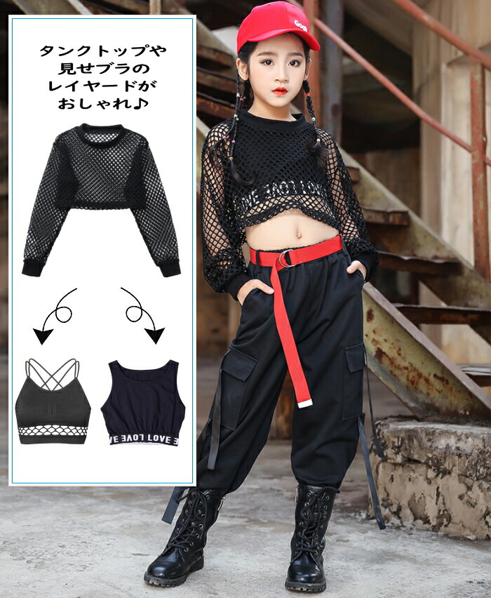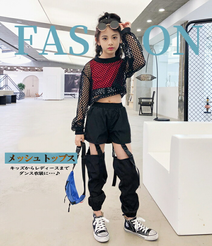 メッシュ トップス キッズ ダンス衣装 ヒップホップ ジャズダンス ダンス 衣装 ショート丈 へそ出し ワイドシルエット 透け シースルー ストリート 透け編み セク 重ね着