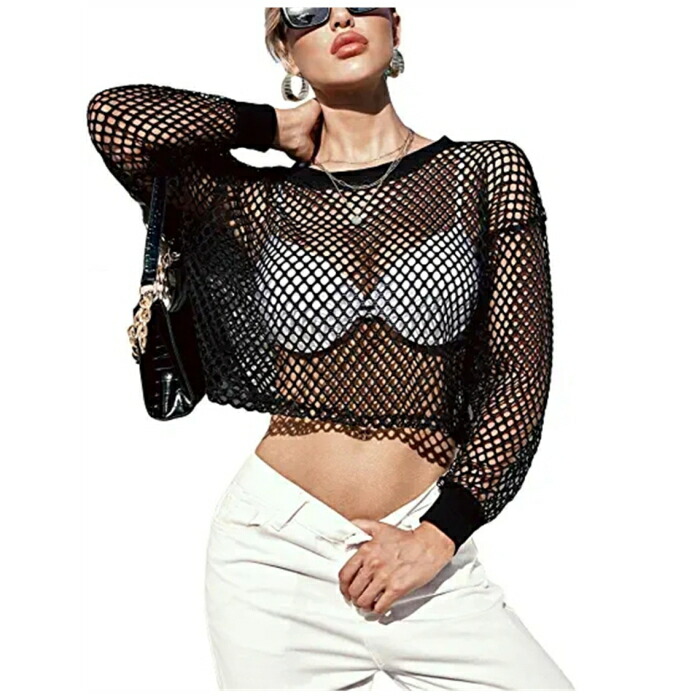 大きい目のメッシュ素材で、スポーティー肌見せトップス。