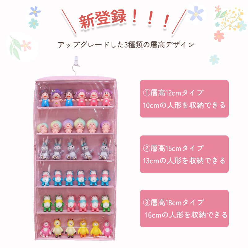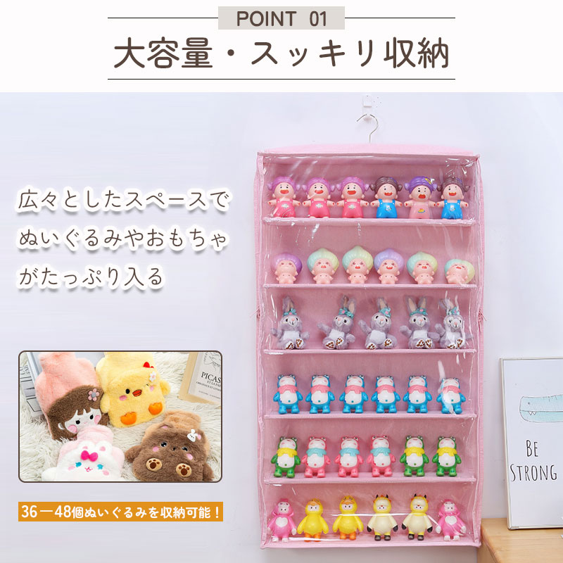 ぬいぐるみウォールポケット ぬいぐるみ ベージュ ピンク 6段・高さ72cm(12cm*52cm*7cm) 6段・高さ90cm(15cm*52cm*7cm) 6段・高さ108cm(18cm*52cm*7cm)