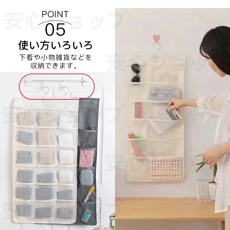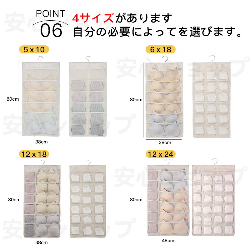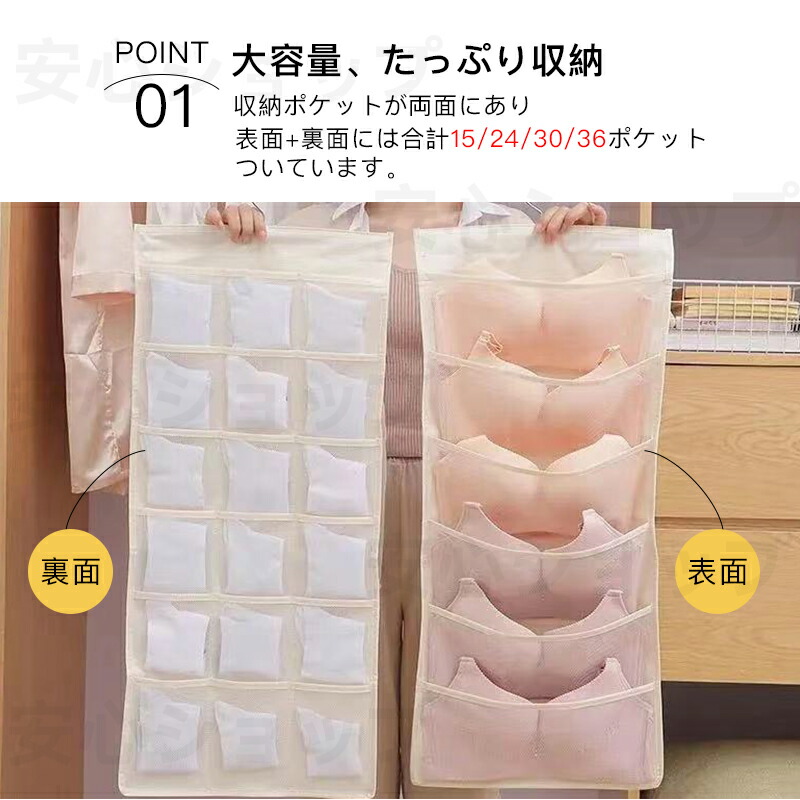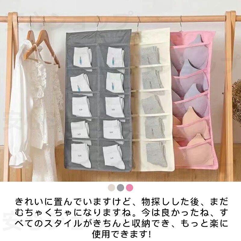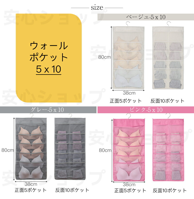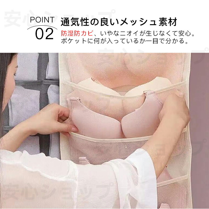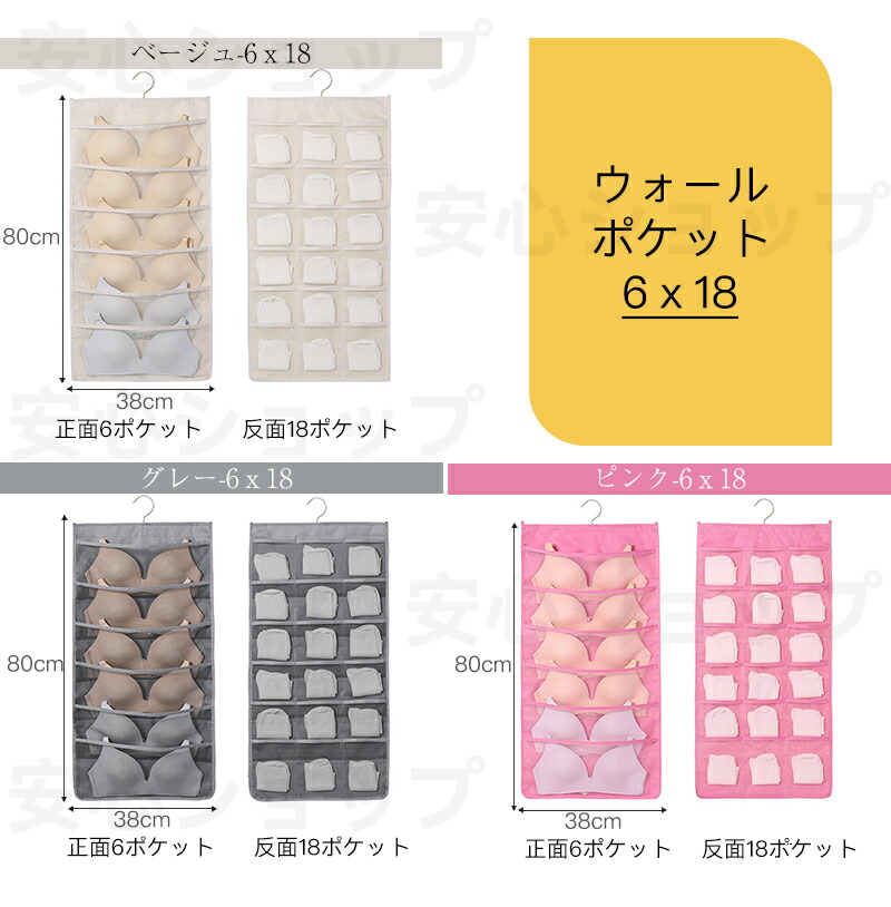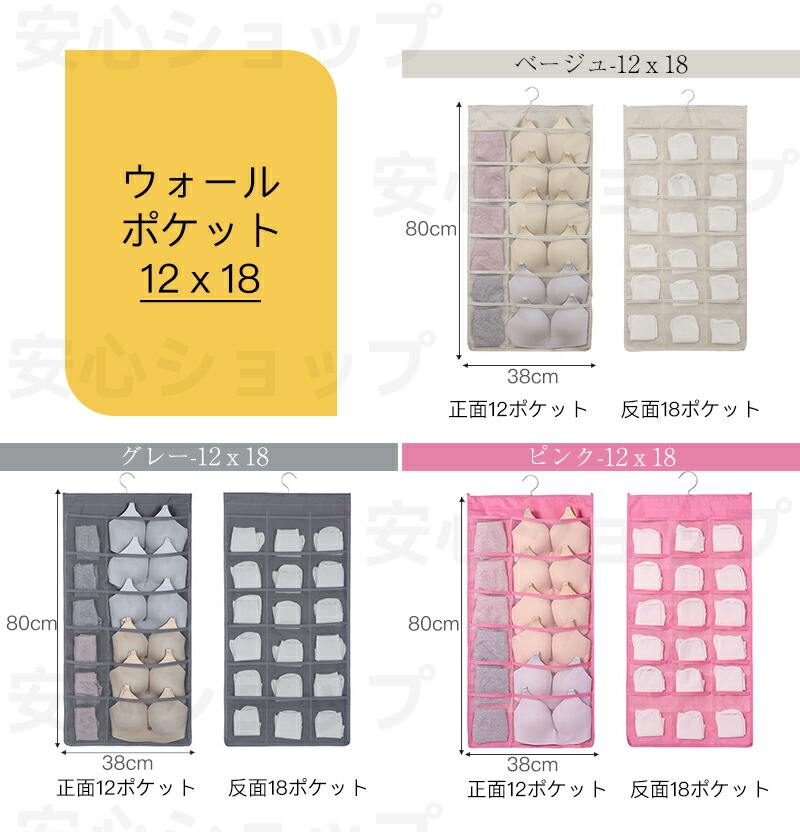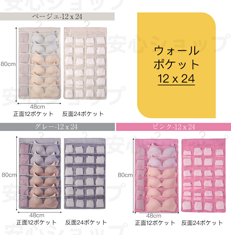 ウォールポケット 下着収納 ブラジャー ベージュ グレー ピンク 表5個+裏10個 表6個+裏18個 表12個+裏18個 表12個+裏24個