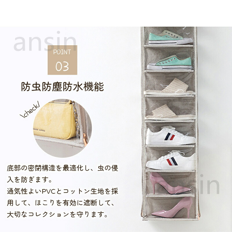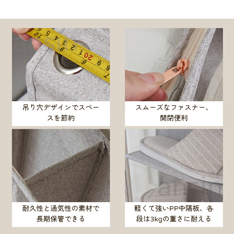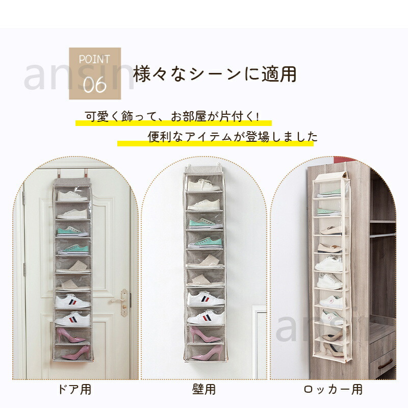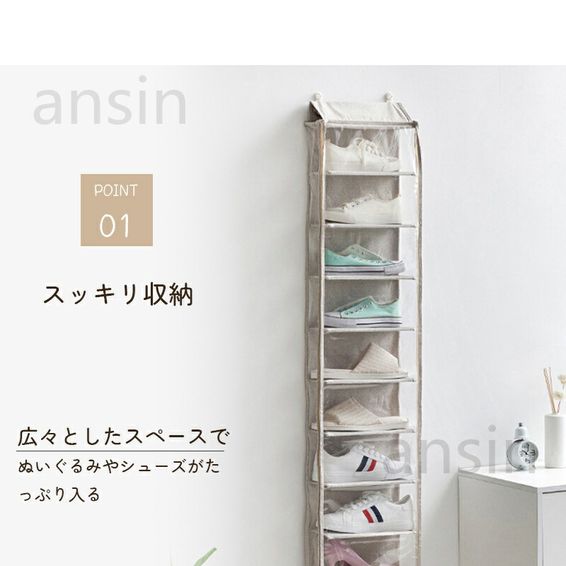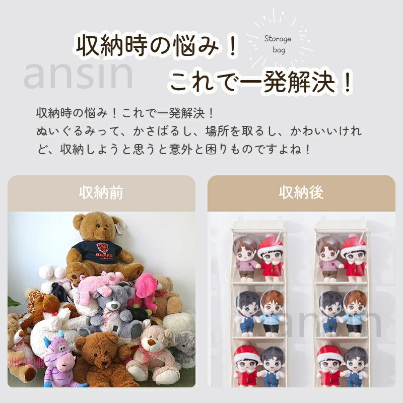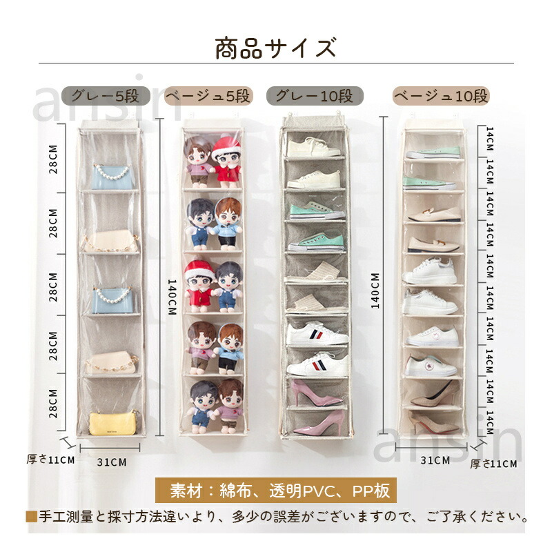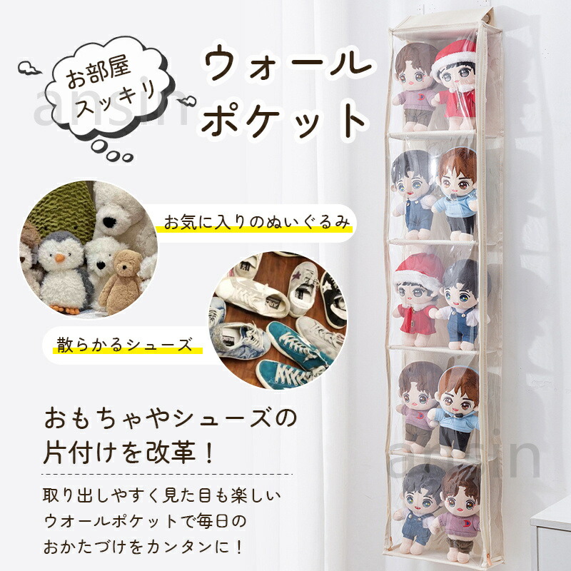 ぬいぐるみウォールポケット シューズ収 ベージュ グレー 5段(28cmx5段x幅31cm) 10段((14cmx10段x幅31cm)