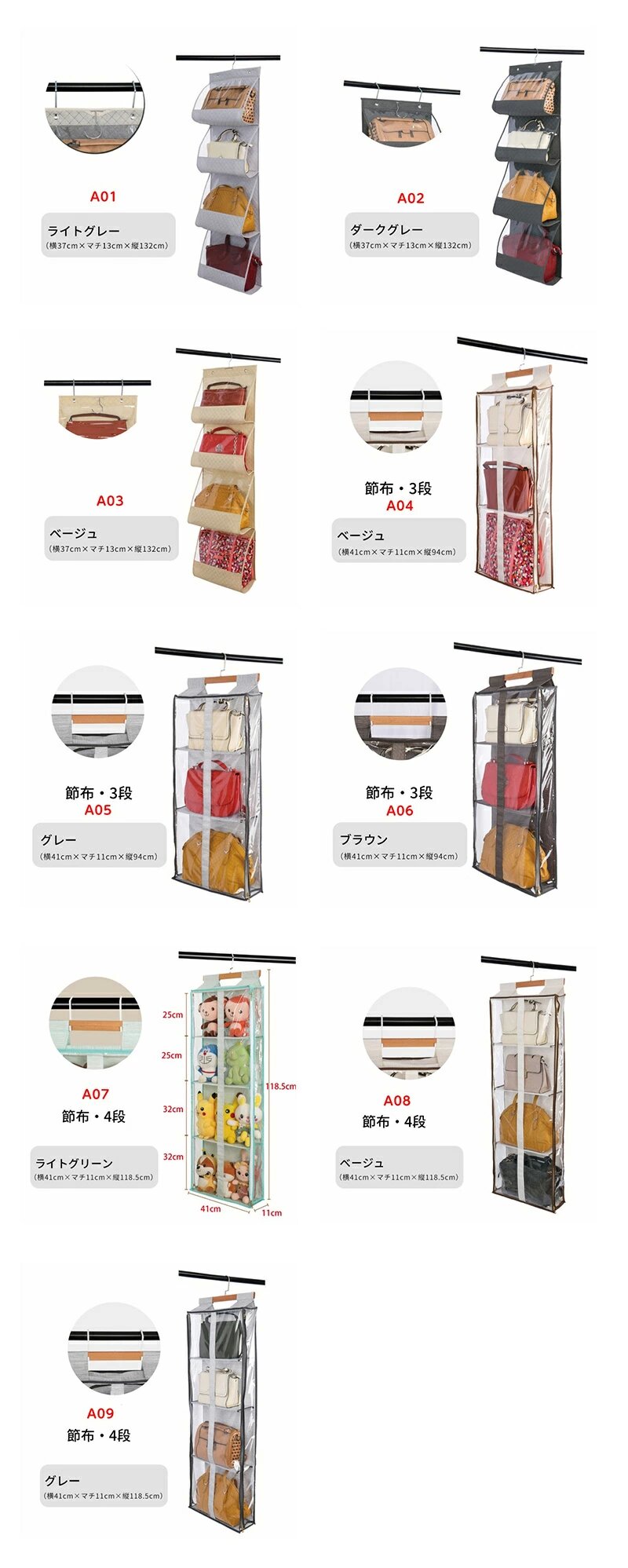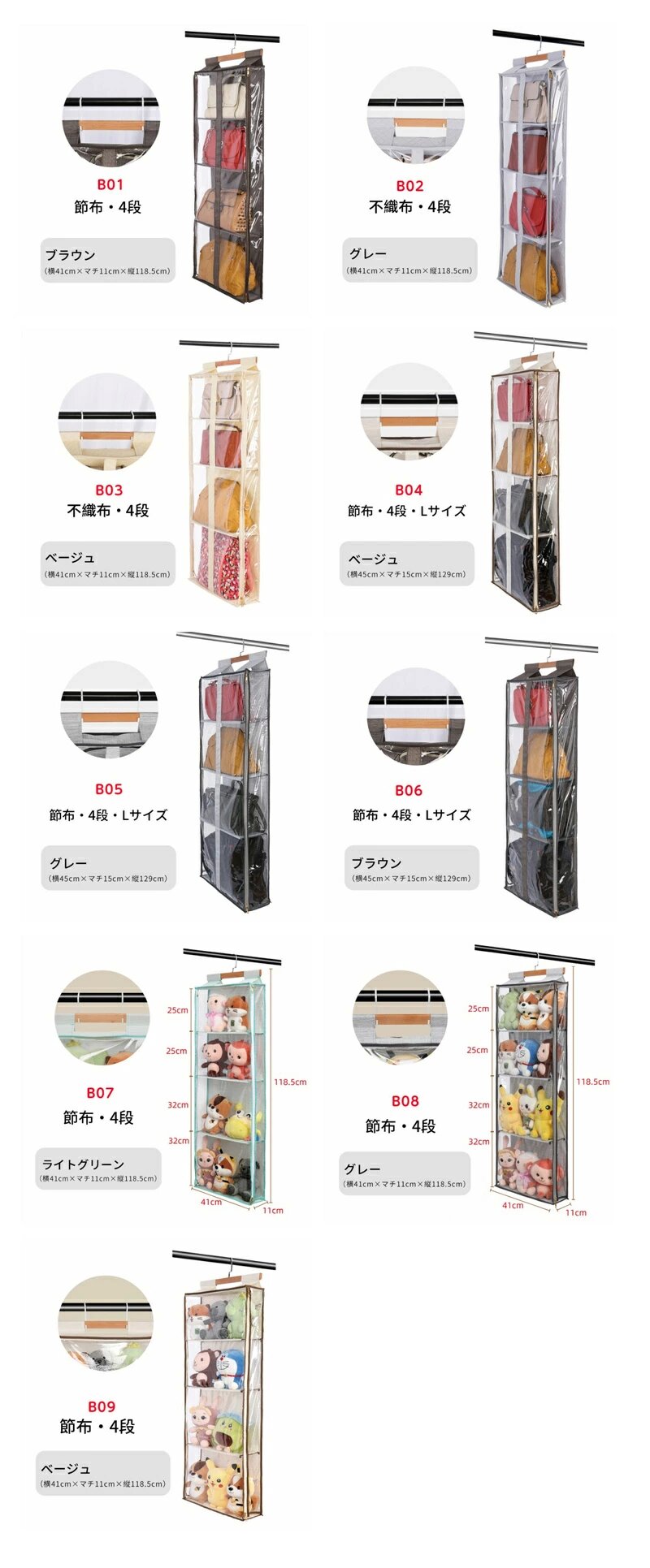 ぬいぐるみウォールポケット バッグ収納 01 02 03 04 05 06 07 08 09 A B