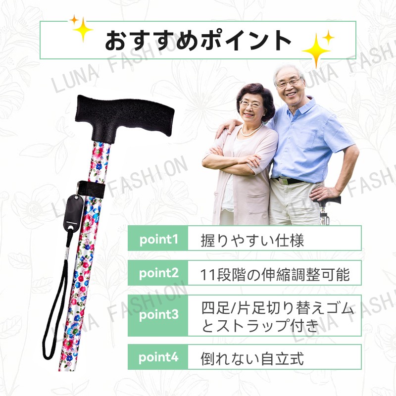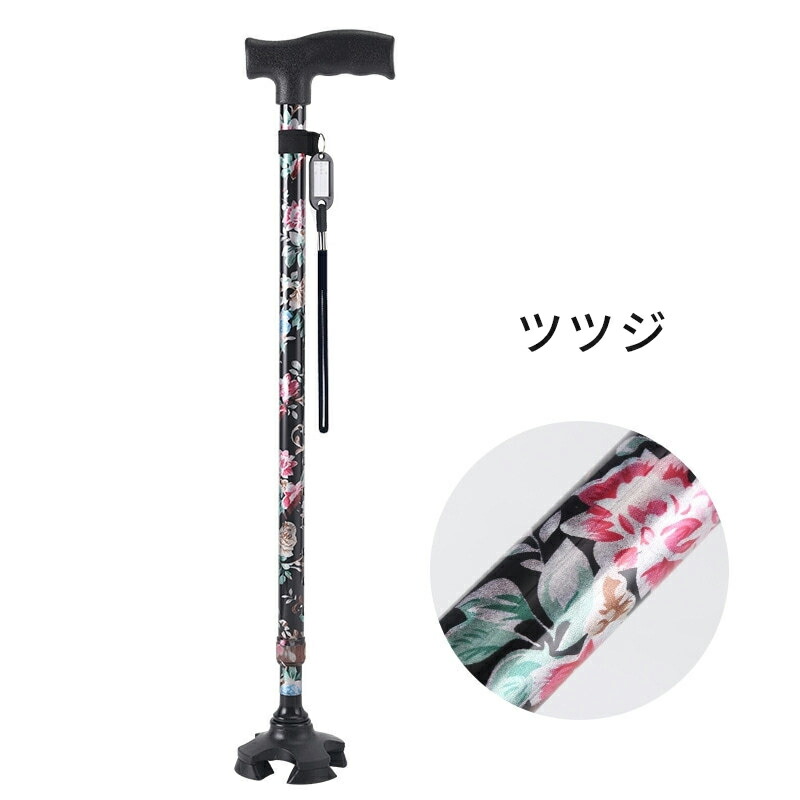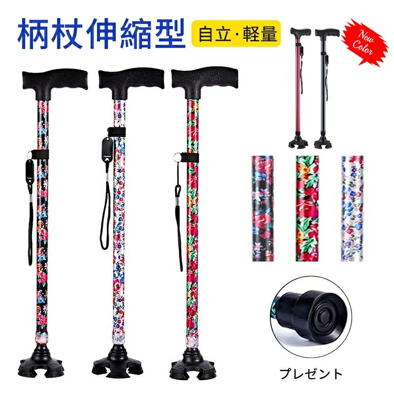母の日 父の日 杖 軽量 女性用 つえ 介護 ステッキ おしゃれ 花柄 伸縮 伸縮式 自立式 自立杖 収納袋 歩行補助 長さ調節 補助 レディース 婦人用 敬老の日 誕生日 プレゼント バレンタイン ギフト 人気