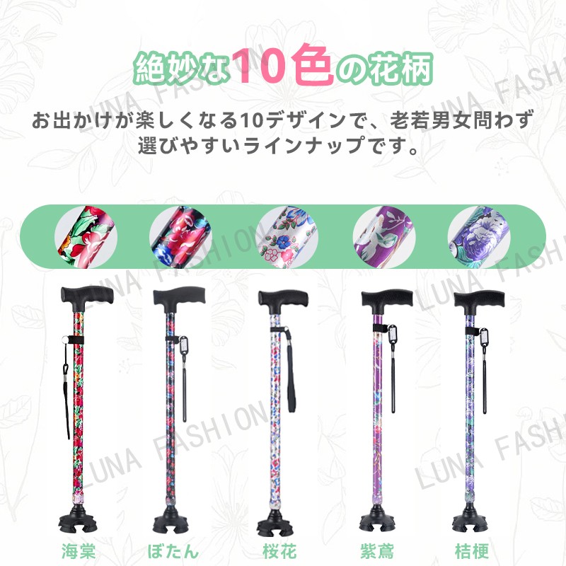 杖 軽量 介護 女性 男性 自立 伸縮 海棠 ぼたん 桜花 桔梗 紫鳶 無地-ブラック 無地-レッド 多花 ツツジ コウシンバラ