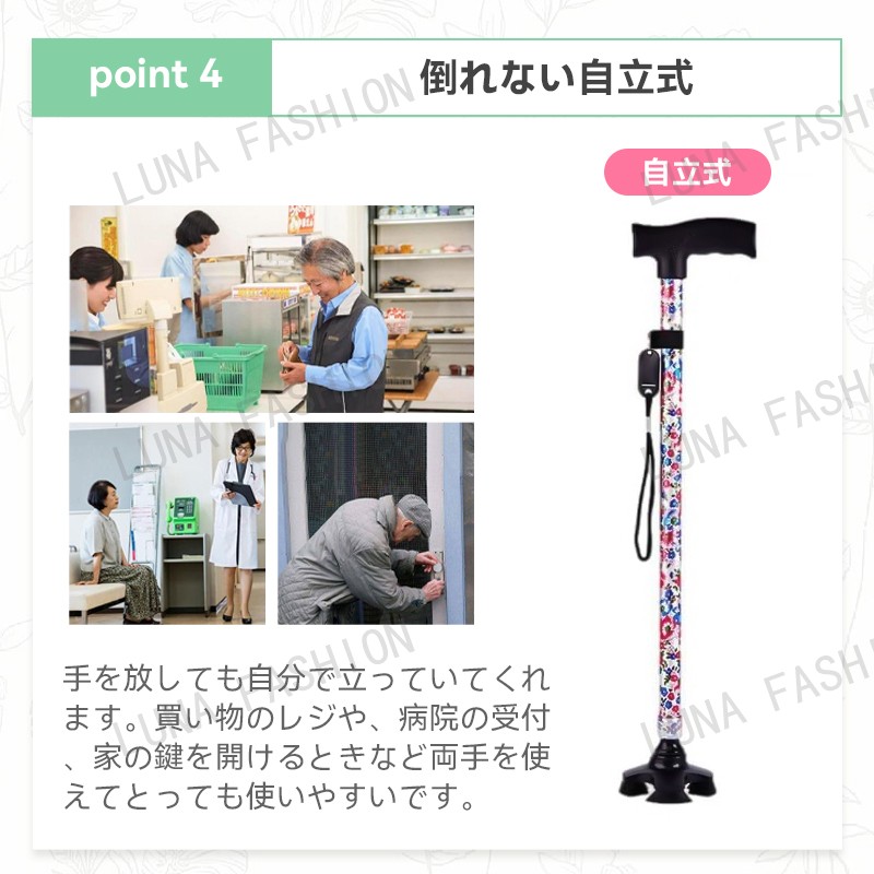 杖 軽量 介護 女性 男性 自立 伸縮式 長さ調節可能 自立式 自立杖 歩行補助レディース 婦人用 折り畳み不可 屋外転倒防止 バレンタイン ギフト 人気 父の日 敬老の日 夏ギフト お中元 母の日
