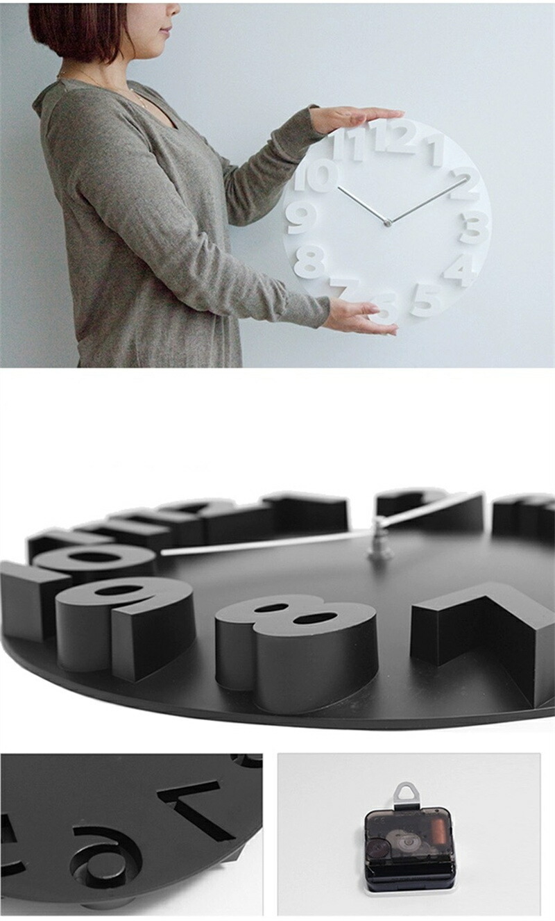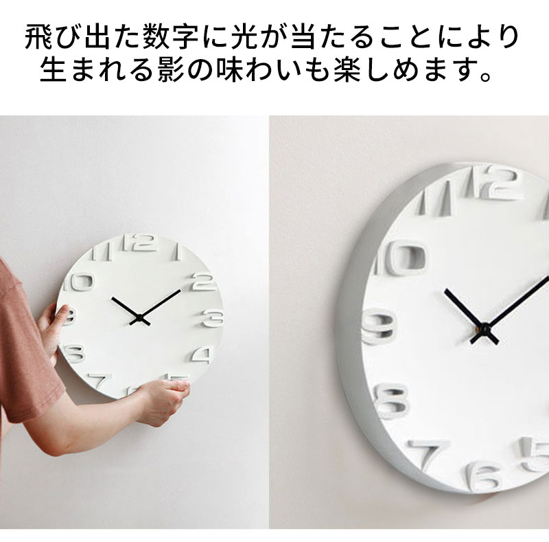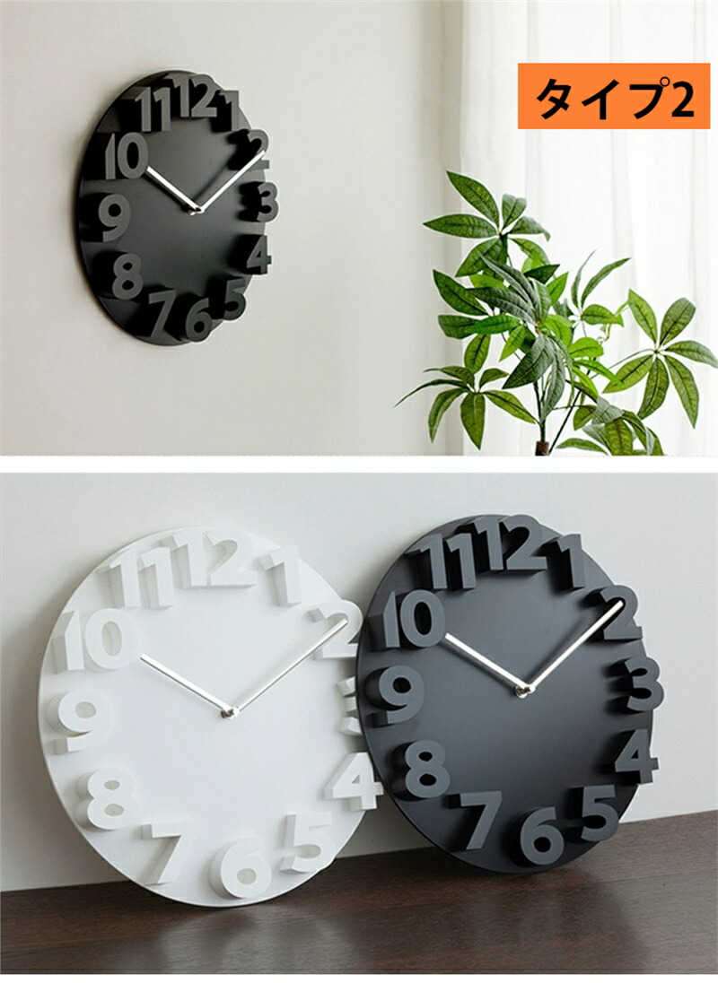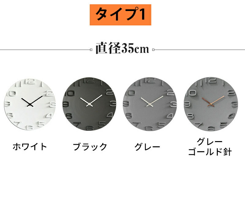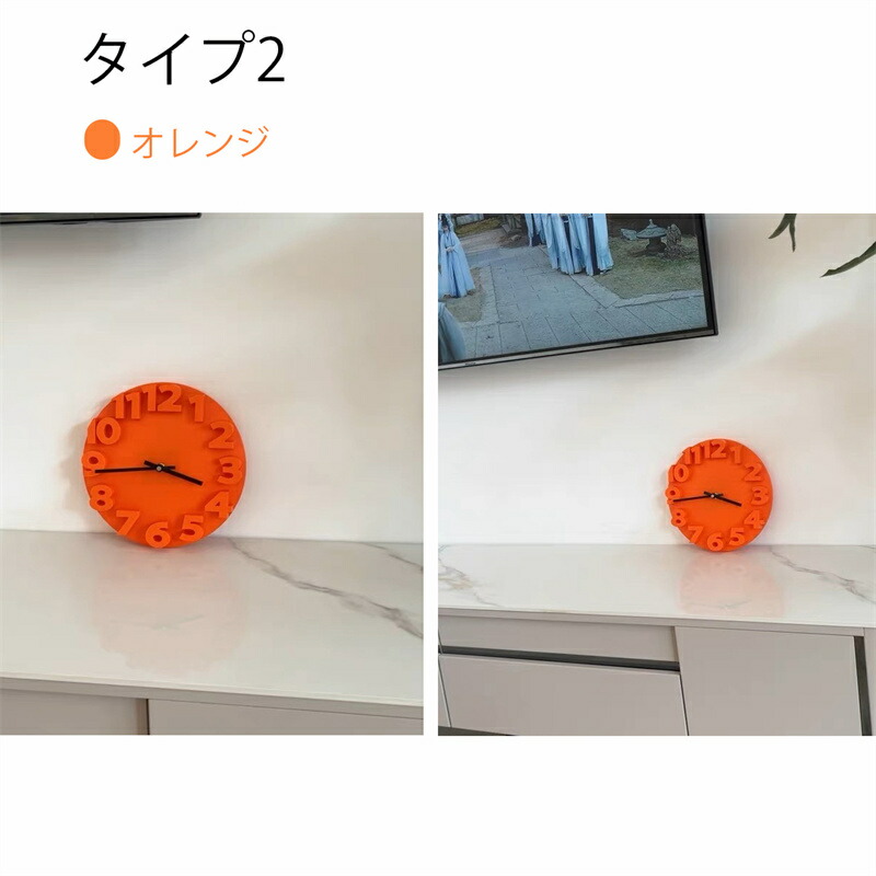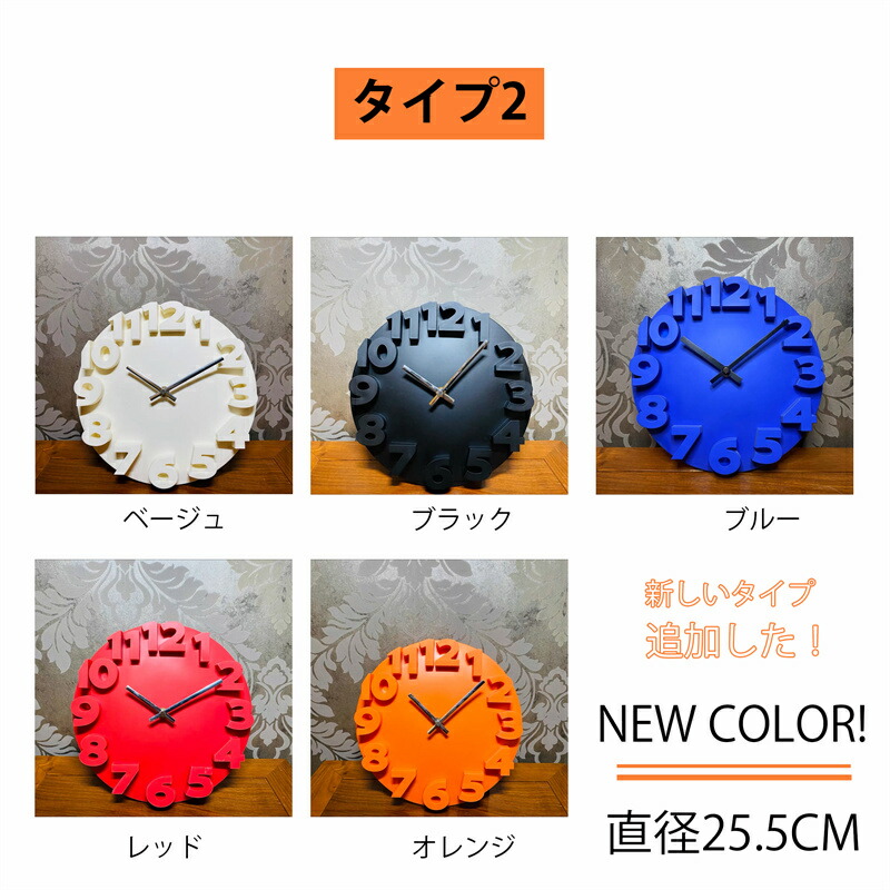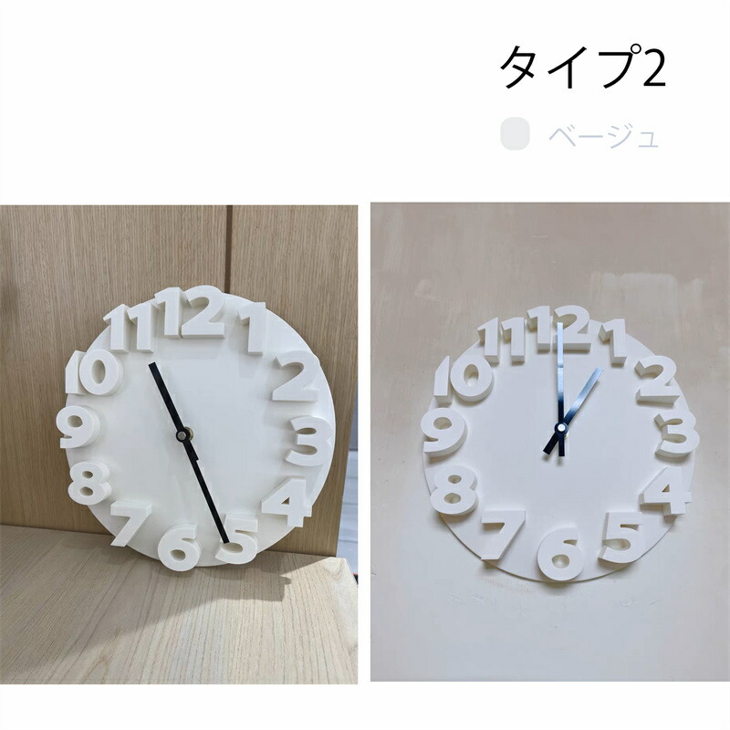 かけ時計 壁掛け時計 おしゃれ 3D タイプ1 タイプ2 ホワイト ブラック グレー ライトグレー+ゴールド針 ベージュ オレンジ ブルー レッド