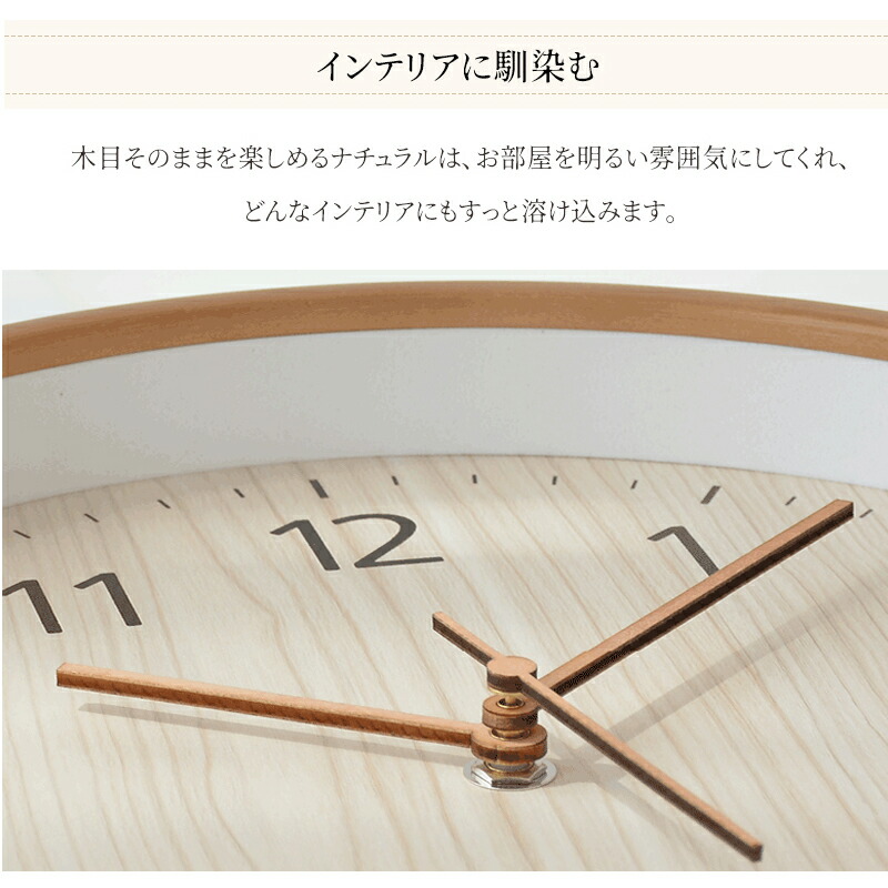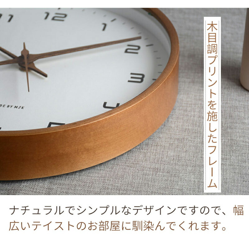 壁掛け時計 Wall Clock 木枠 壁掛け 掛け時計 木目調 シンプル 部屋装飾 クロック インテリア 非電波 ウォールクロック 大きい スイープ 大数字 見やす ナチュラル