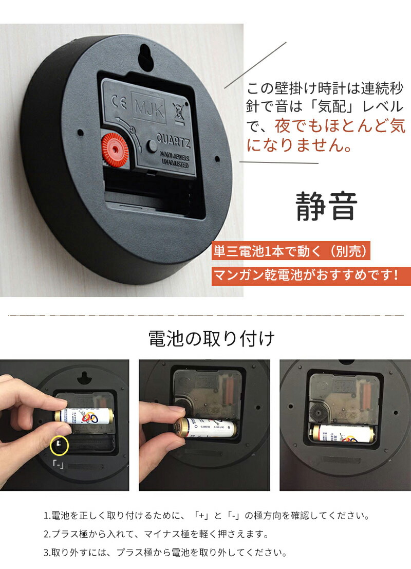 ◆この壁掛け時計は連続秒針で音は「気配」レベルで、夜でもほとんど気になりません。