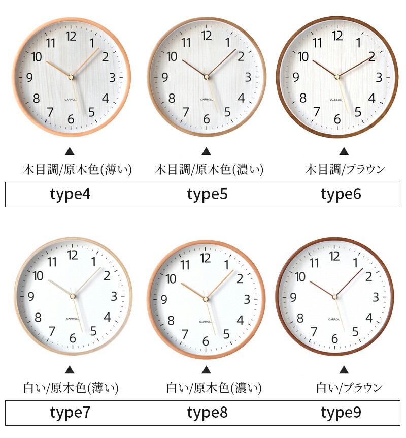 壁掛け時計 Wall Clock 木枠 type1 type2 type3 type4 type5 type6 type7 type8 type9 直径10インチ(25cm) 直径12インチ(30cm)